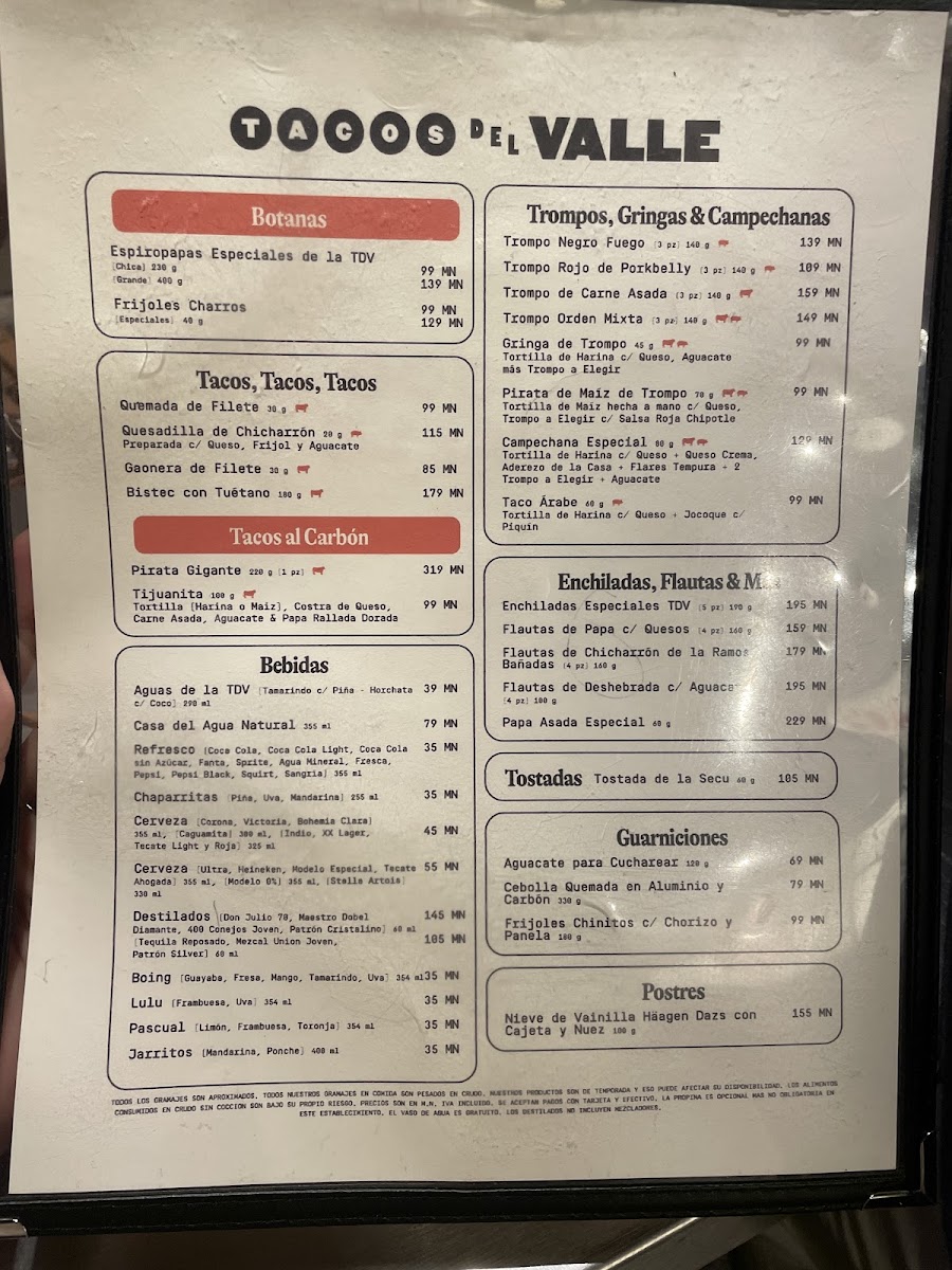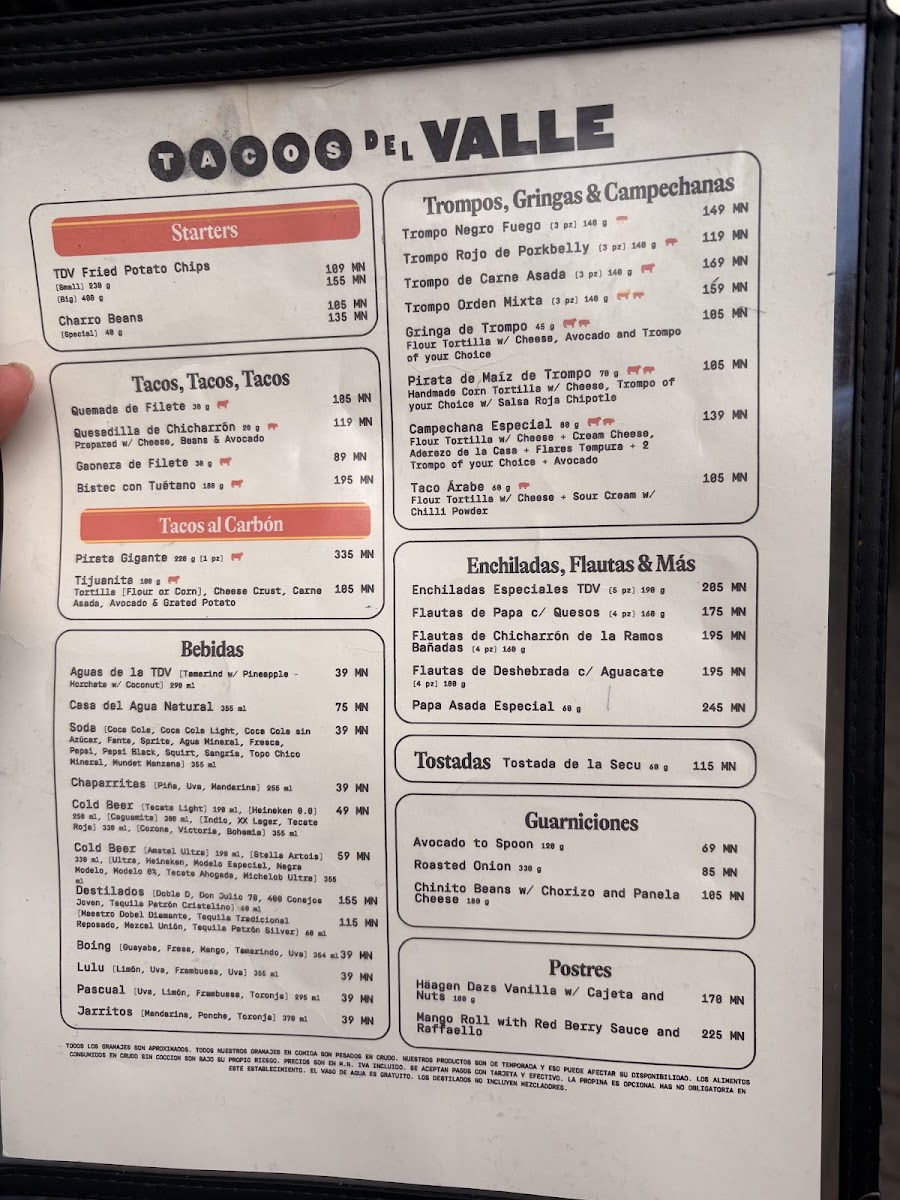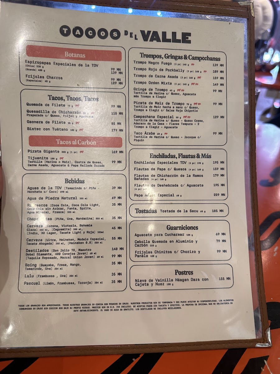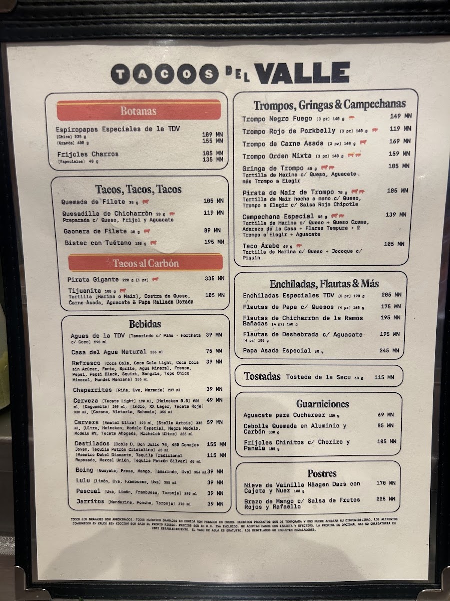 Tacos Del Valle (Roma Norte) Menu