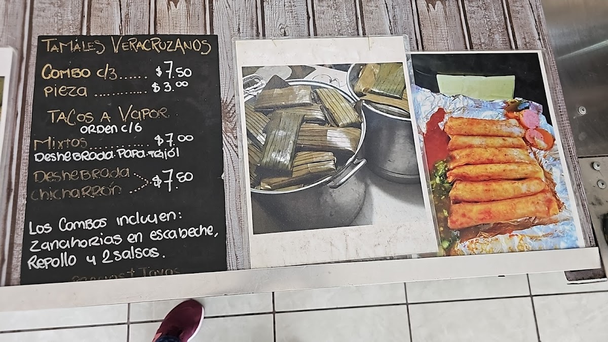 Los tamales veracruzanos los podemos vender solos a 2$ cada uno. Pero también le damos la opción de pedir la orden que es tres tamales con su bebida, los tamales los tenemos de pollo y puerco (sin hueso).