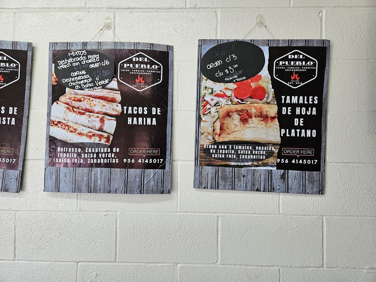Los tacos de harina tienen seis tacos en la orden. Usted puede pedir la orden a su gusto, tenemos de desebrada,picadillo,papa,frijol, y chicharron. Pero si usted gusta el taco solo, se lo dejamos en 1$. La orden viene con su bebida.