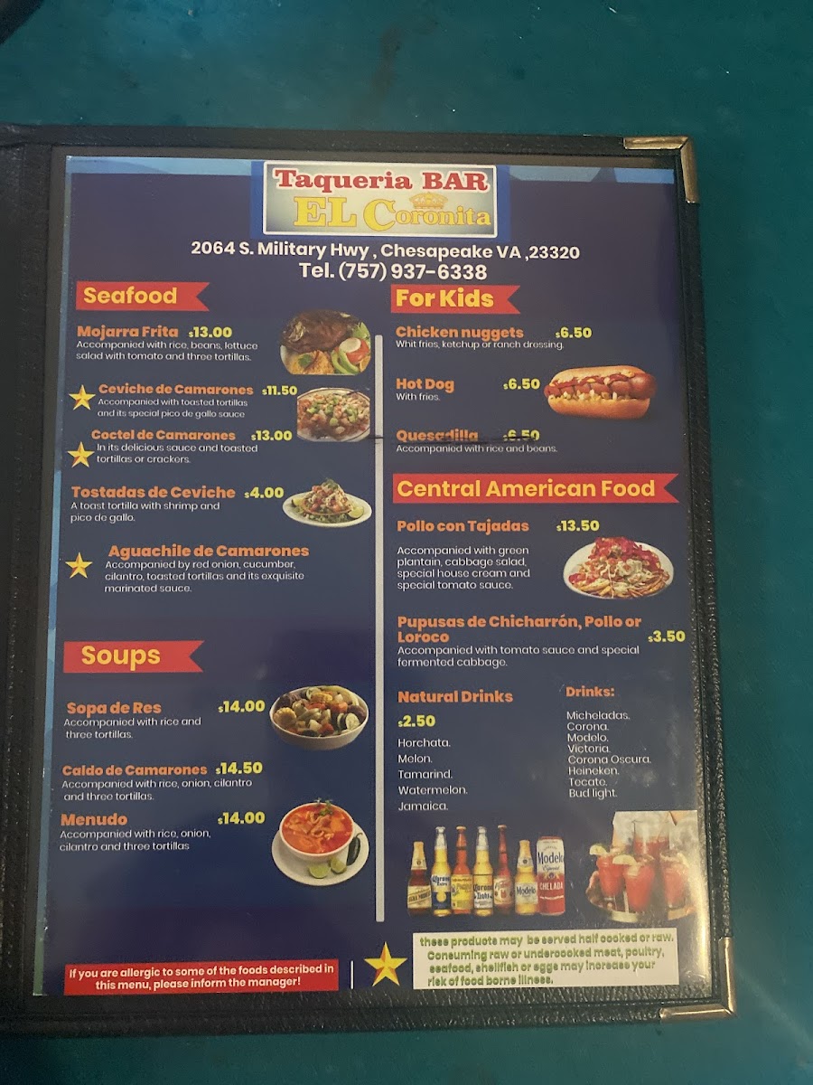 Chicken or ground beef and comes with lettuce, tomato, cheese and cream.