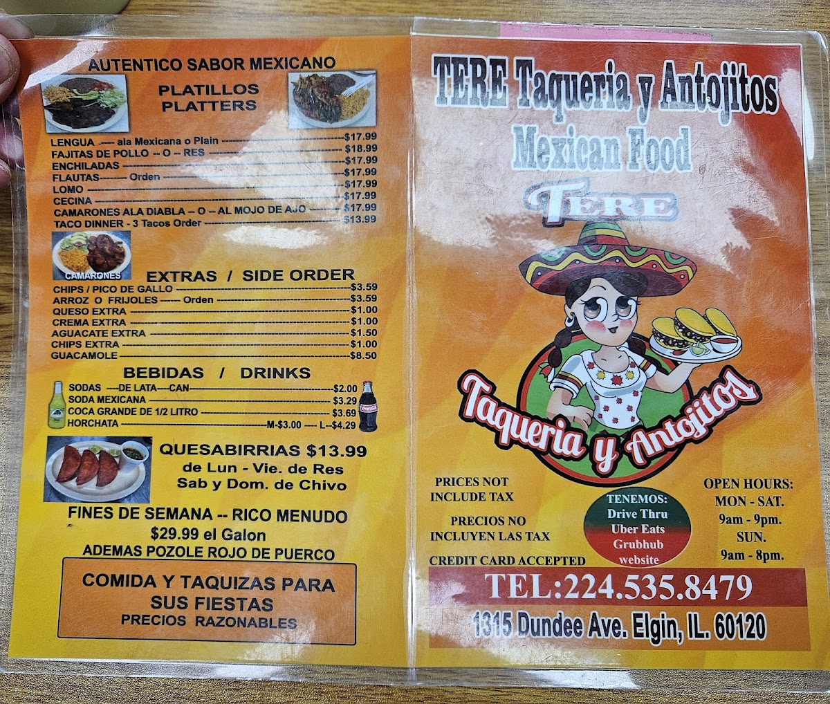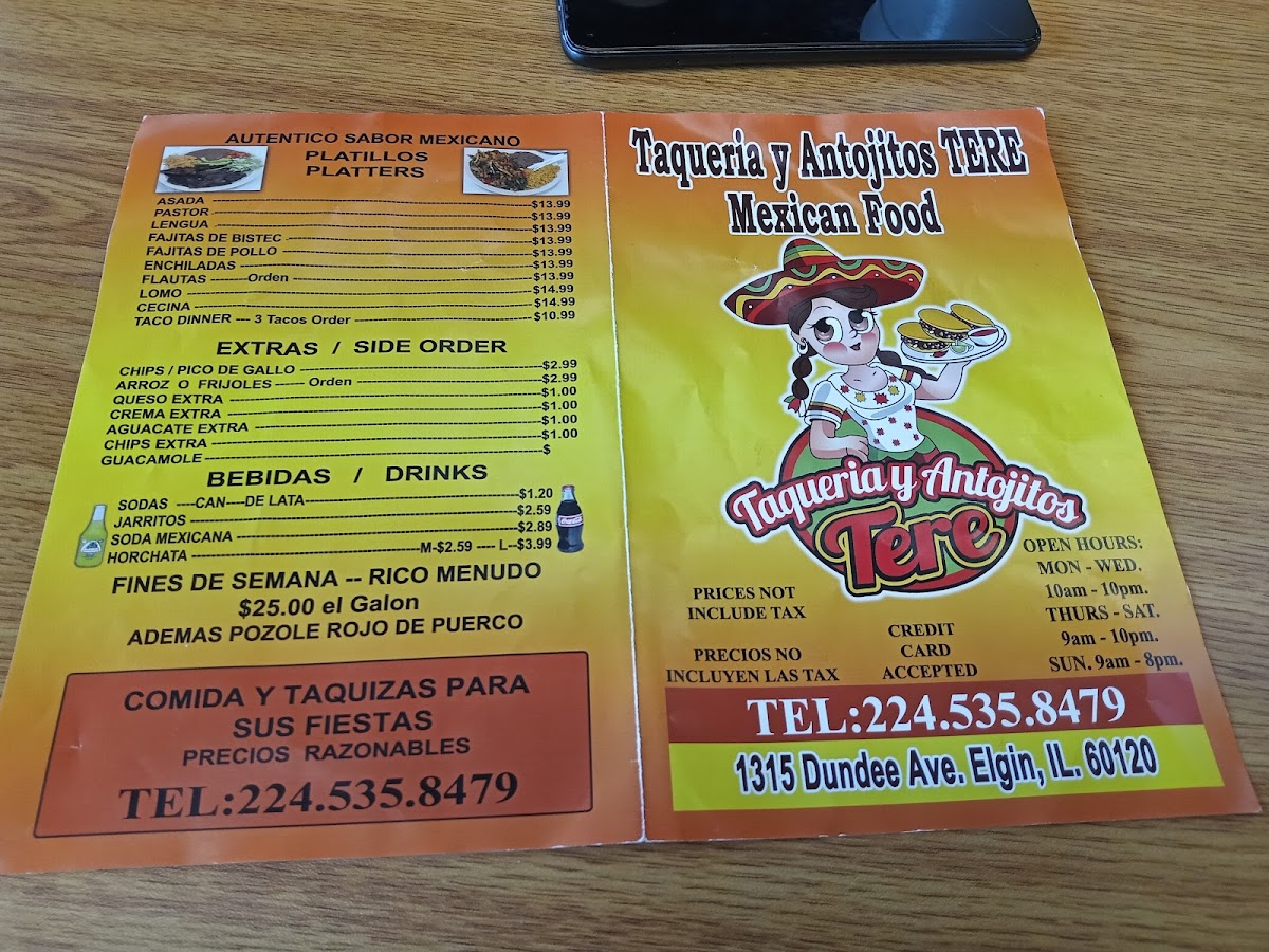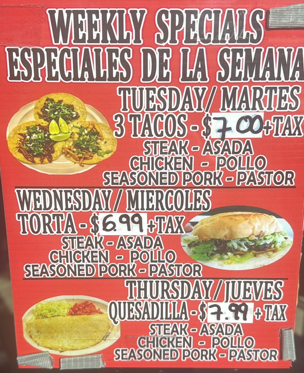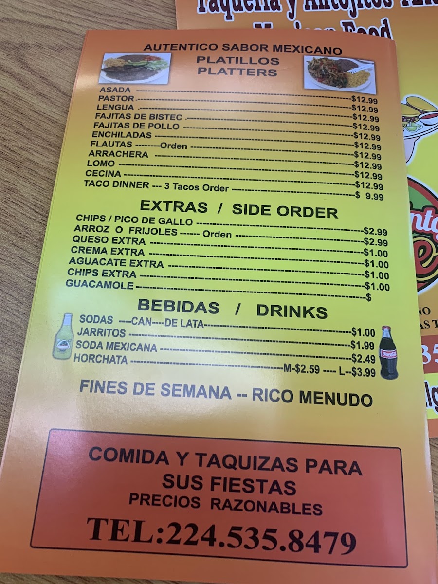 Comes with any type of meat, you choose. Con cualquier carne de su gusto. Include: Lettuce, tomatoes, cheese, sour cream, cebolla and cilantro.