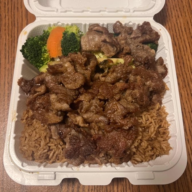 I was hesitant about eating here but my son wanted hibachi and I wanted to stay home. This was the common medium. First time eating here and they over delivered. The person who took our order was kind and pleasant. A lot of food was served. Definitely a portion for two. However, the food was 100% delicious!