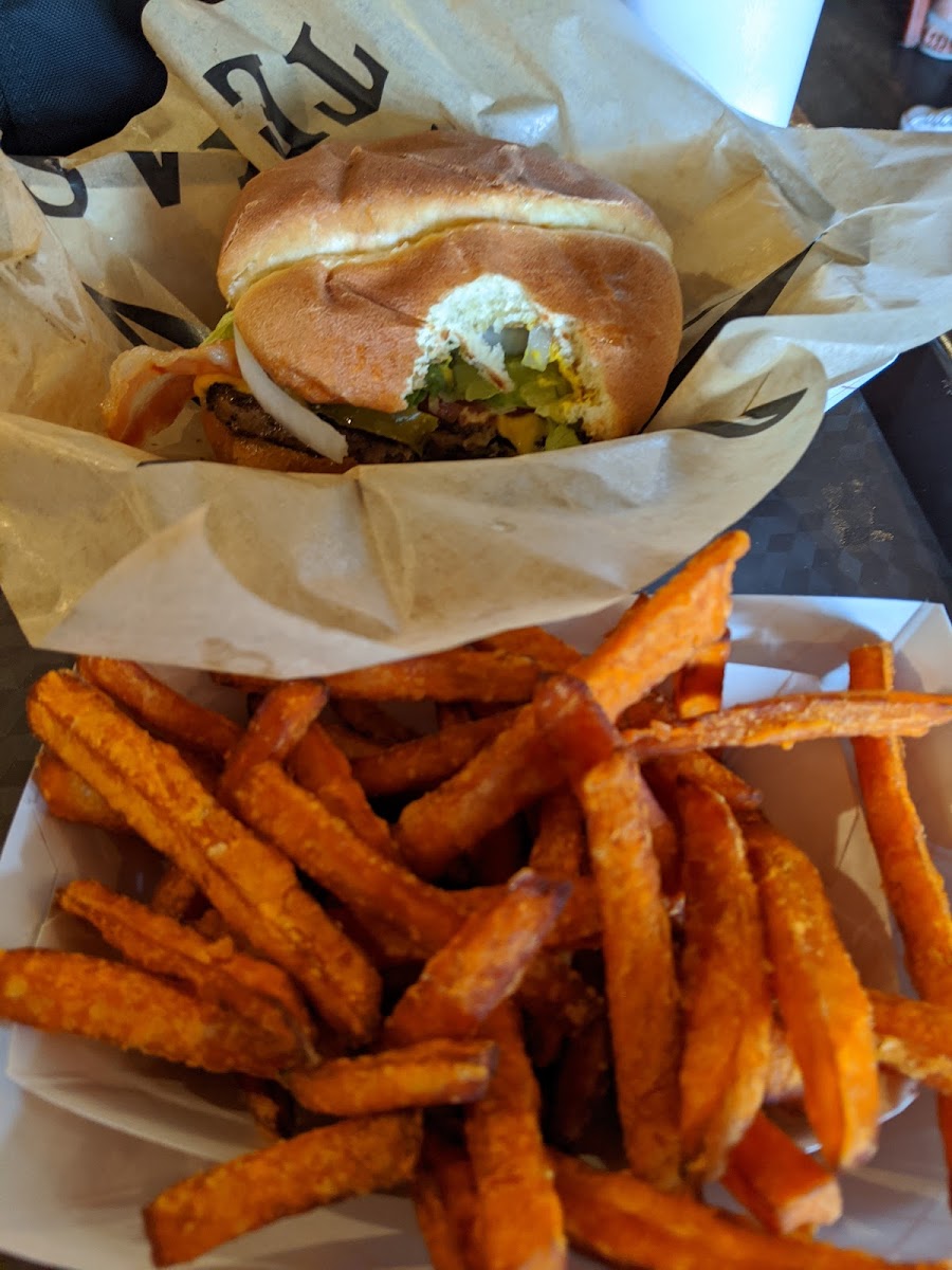 Best Burgers build yourself., with condiments bar. Now servings tacos, Jalapeño poppers,sidewinder fries, sweet potato fries, curly fries, onion rings, frito pies, buffalo wings..with many addons: I ordered the triple meat burger/seasoned curly fries.. it was huge. Very well satisfied, and fair prices. Very Delicious Burgers indeed