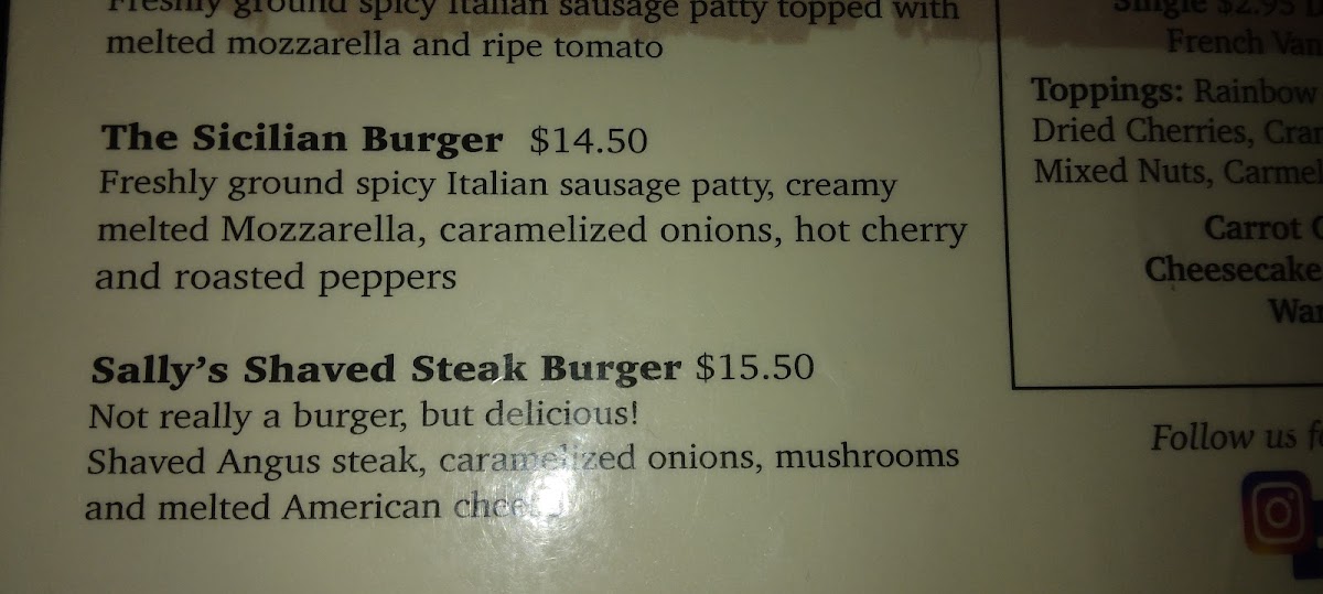 Griddled burger patty, smoked bacon, American cheese and caramelized onions on Lupi’s Rye bread