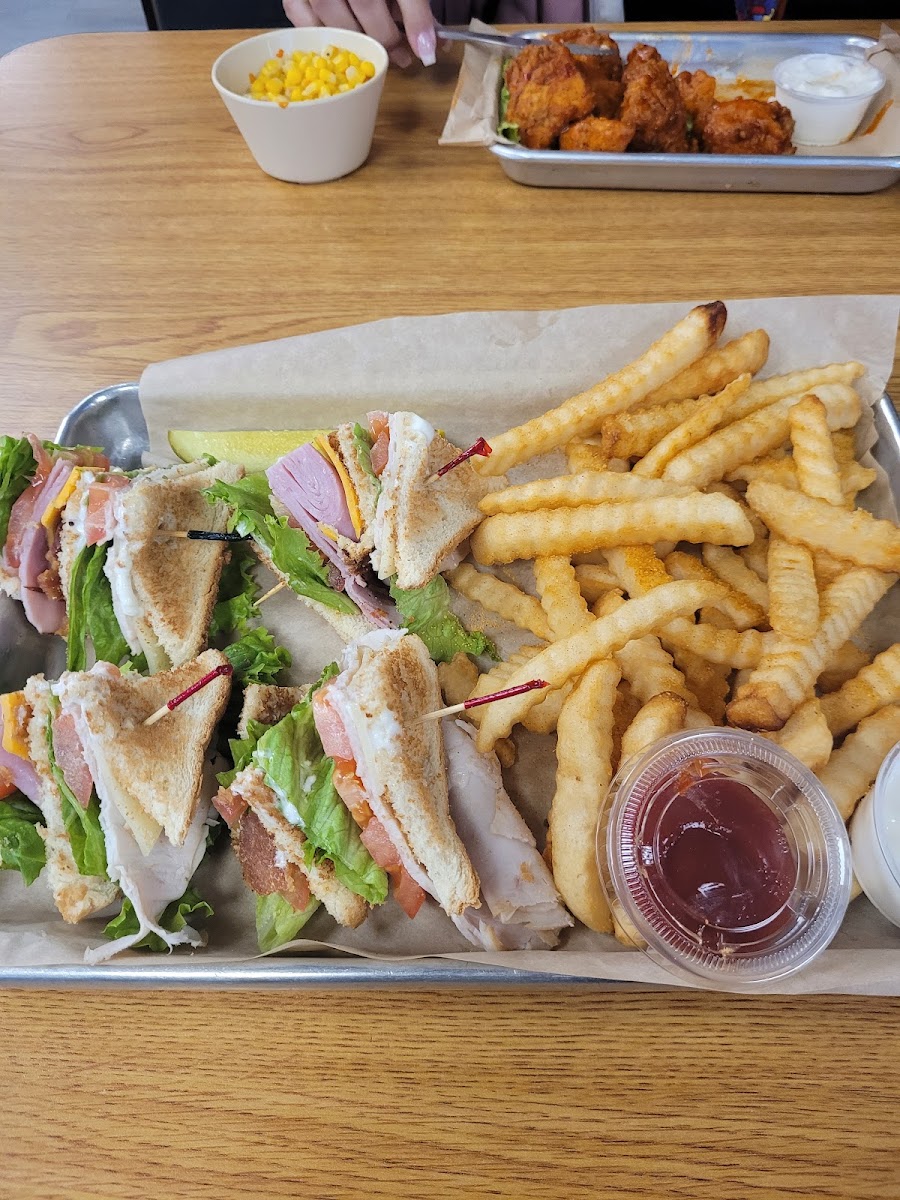 The Dari is a Restaurant situated at 675 W Center St, Greenwood, AR 72936, United States. It has garnered 776 user reviews. The total number of dishes on the menu is not specified, but key featured dishes include the Club Sandwich with Fat Fries, Cobb Salad, Side Salad, Buffalo Chicken Wrap, and Iced Tea, offering a selection of casual and hearty meals with refreshing beverages.