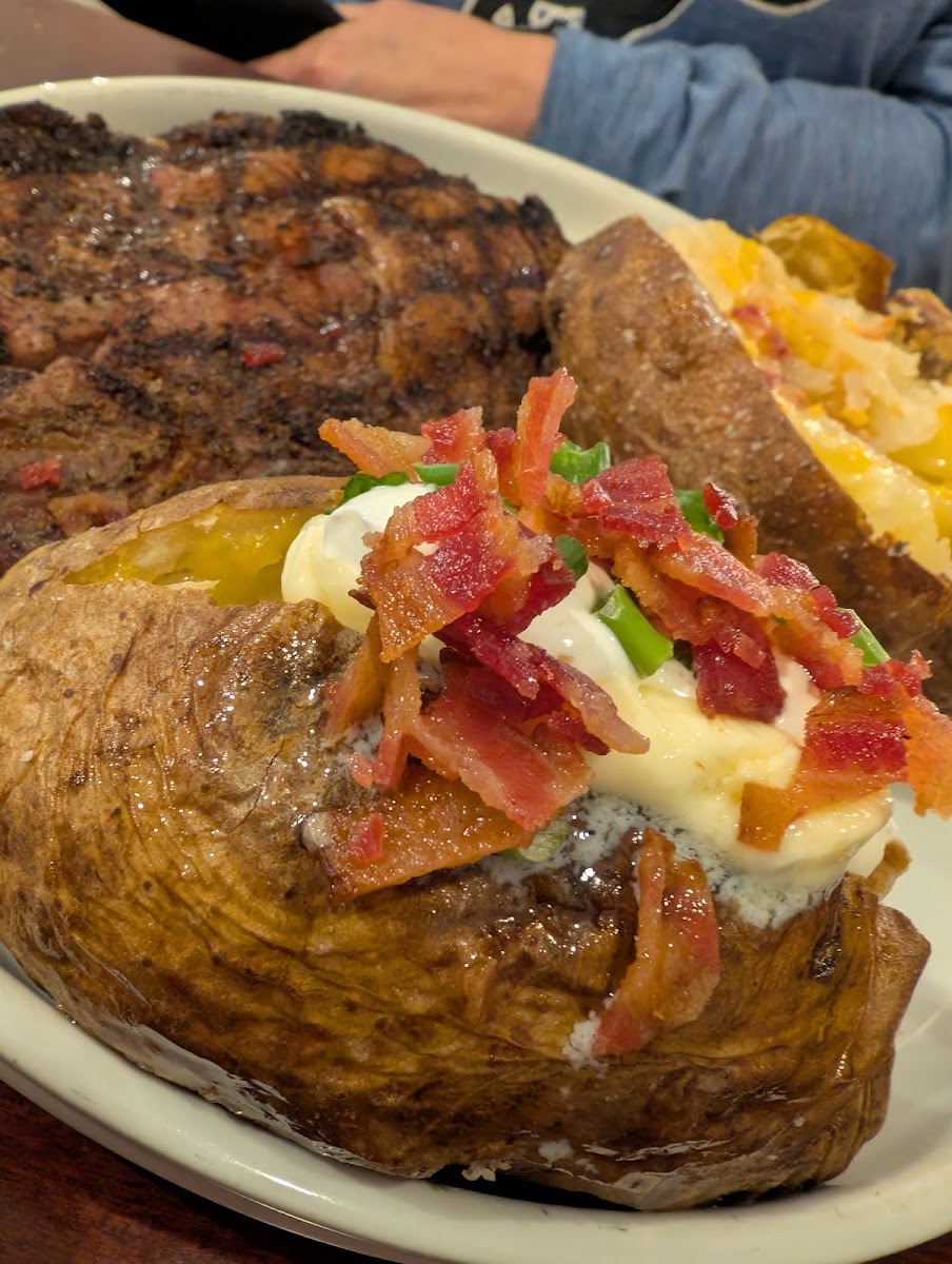 Full disclosure: this review was a 4/5 until I saw that Captain America watches you go to the bathroom. That bumps it up. I had a Burger, medium rare, with an egg sunny side up, cheese and bacon and a loaded baked potato. My wife had BBQ shrimp with a fried grits ball. The burger was very good, if messy thanks to the egg (which isn't a complaint). Baked potato was good, but even though it was hot, it didn't melt the cheese very well; some types of cheese don't melt super easy. The shrimp were a little plain, which implies most of the flavor comes from the BBQ sauce, which was good but very fishy. The fried grits were delicious. As an appetizer, we had cheese and bacon fries with sour cream and a side of ranch. While they look a little plain, they are actually delicious also; the cheese sauce was very good (it had dripped to the bottom of the fry pile). Overall a nice hybrid casual restaurant with a nice taste; the decor was tasteful, but the staff were comfortable in T-shirts and jeans. And, most importantly of all, Captain America watch you potty.