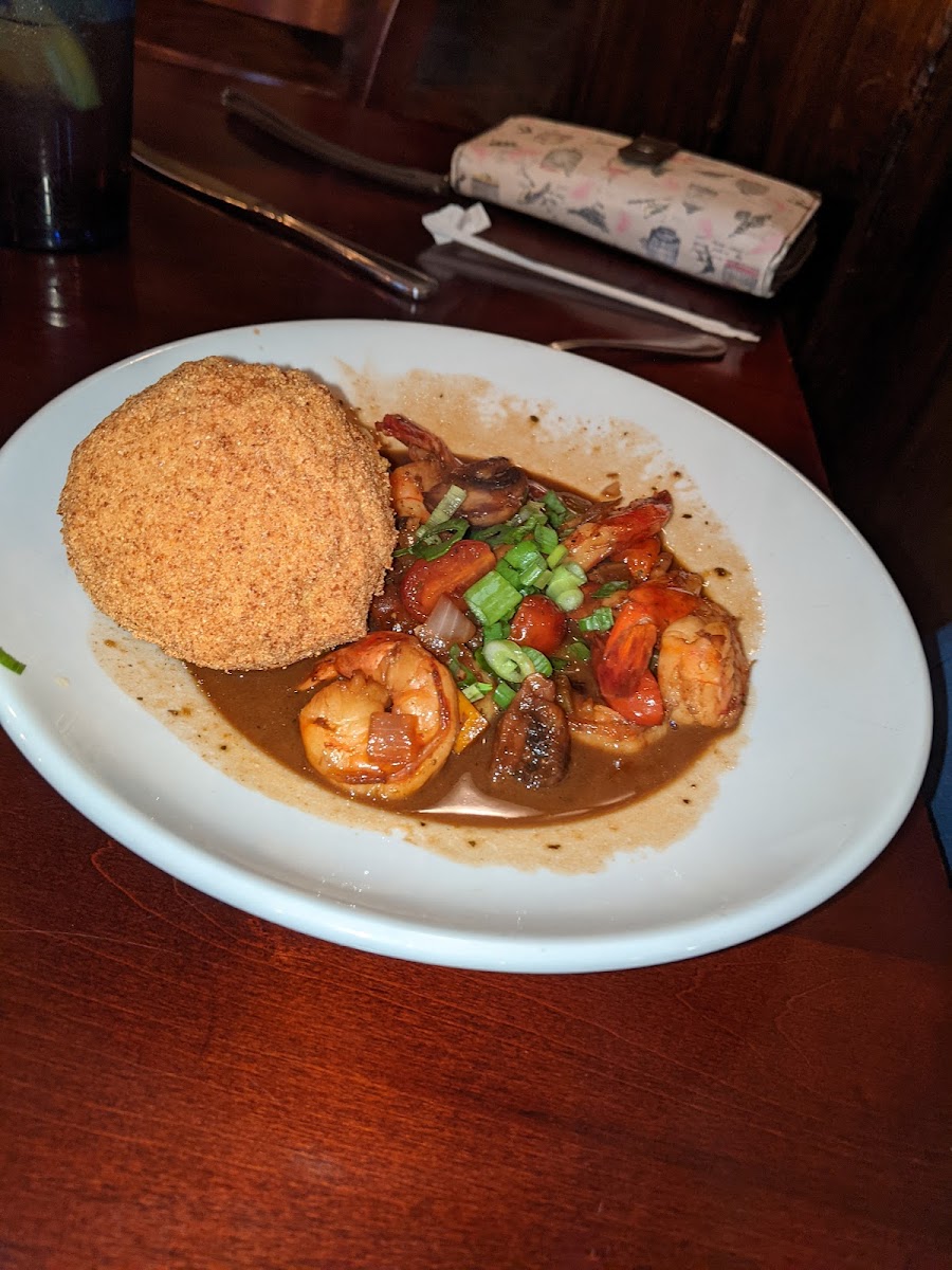 First, the service was wonderful and personable. Our food came out super timely and to perfection. The portion was generous and very well worth it. I got the fish blackened redfish with potatoes and greens beans. The fish was thick and cooked perfectly. My friend got the shrimp po-boy and a loaded baked potato. She was pretty good.