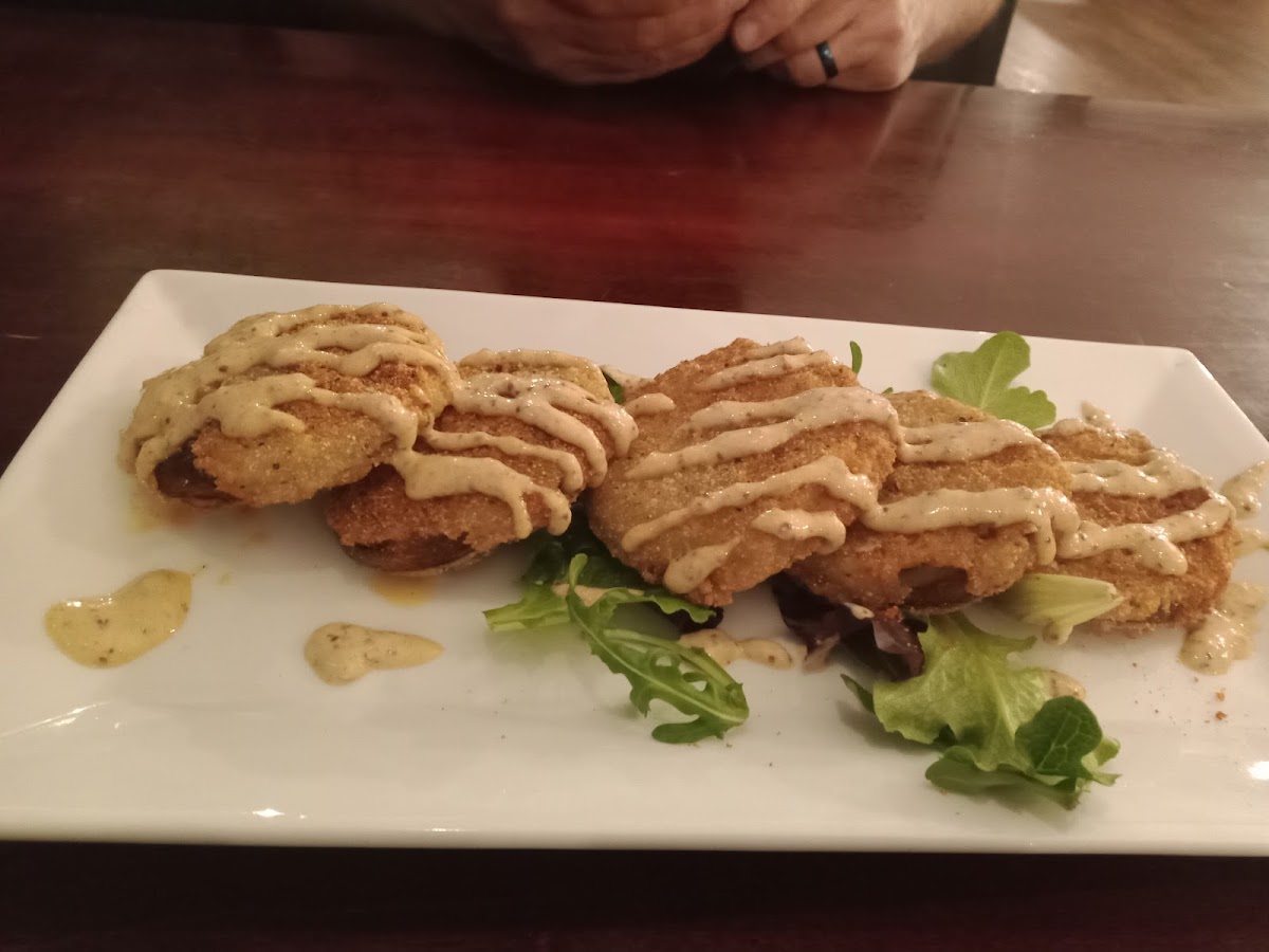 The Staff were very friendly and helpful. Got in quick. Was very clean. I had the Bbq Burger. It was very delicious. Loved the fries. The homemade pickles were to die for. Husband got the Shrimp Polenta. It was so good. The Fried Green Tomatoes were pretty good. Was more batter than tomato. His Jack & Coke was perfect. He said the Bloody Mary needed a little more flavor. We poured the juice off my cup of pickles into the Bloody Mary. Made it better. The Cheesecake was so good. The Chocolate Cake was even better. Glad we stopped to try it while traveling