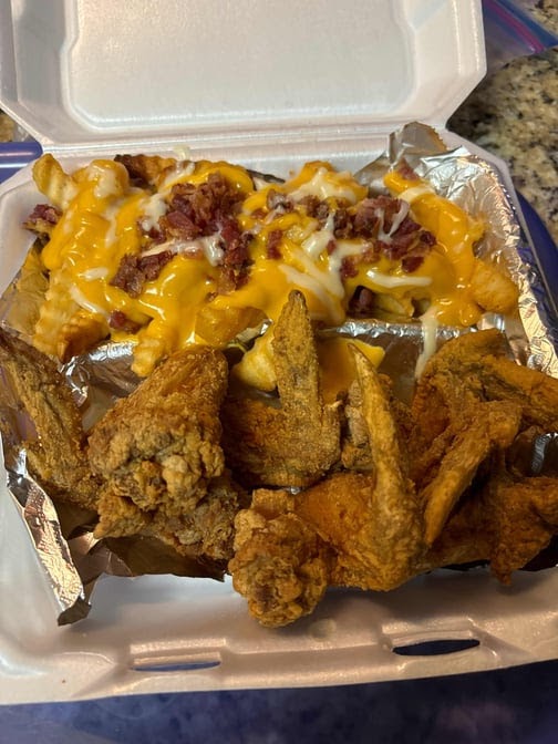 Krave does not fail me. I enjoy the service and food everytime. This steak loaded potato allows me two meals sometimes 3. My teenagers love wings and loaded fries with ranch.