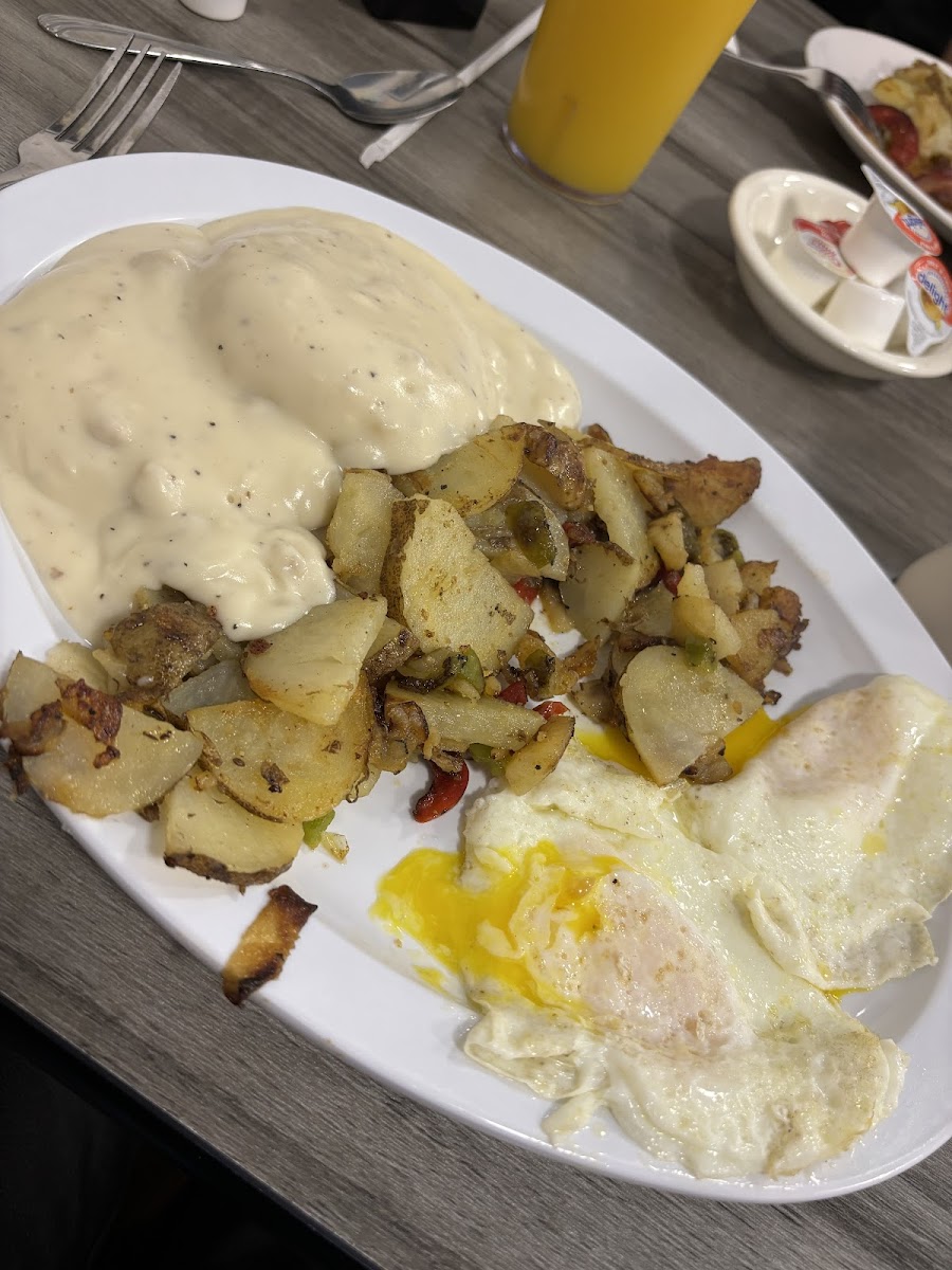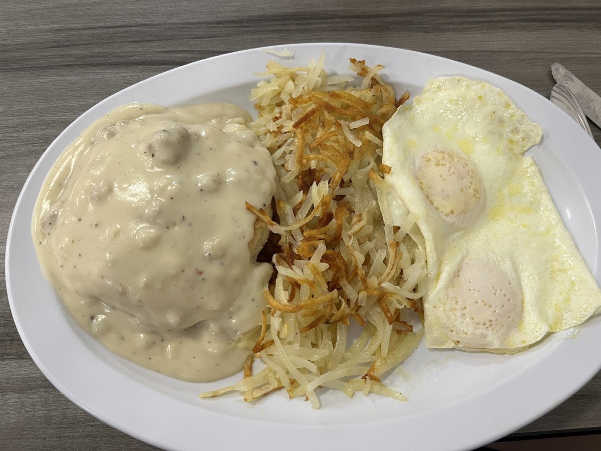This weekend we had the best breakfast that we’ve had in a long time! It’s a quaint restaurant in a great location. Good place for people-watching if you sit by the window. We got excellent service from our waiter, who was attentive and had a great sense of humor. (I forget his name.) I got the Cheesesteak Omelette, one of the specials. My wife got the biscuit and gravy, which is one huge biscuit the size of two normal biscuits. We added a side of bacon, because, why not? Delicious food with big portions made from high quality ingredients. We’ll definitely be back.