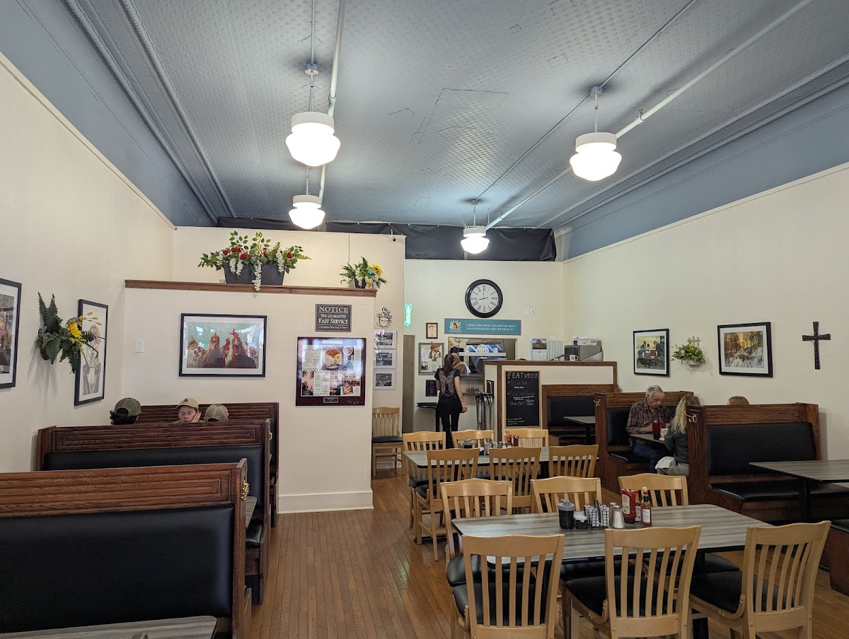I was looking for some place to eat after hiking & was hungry. So i checked out the downtown. Ordered a burger with fries. The fries were some of the best I have tried anywhere. Delicious burger too! $17 was a great price for a good quality lunch. My server was so friendly and the other staff were attentive & kind. One of the ladies let me try their blackberry sauce. The atmosphere is kind of like an old school diner, but with modern seating. Try it out! you will be satisfied.