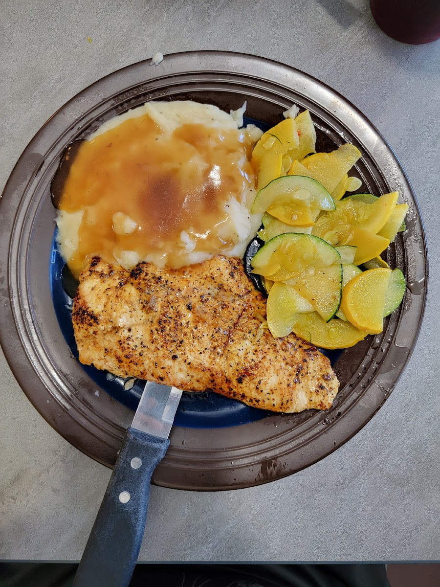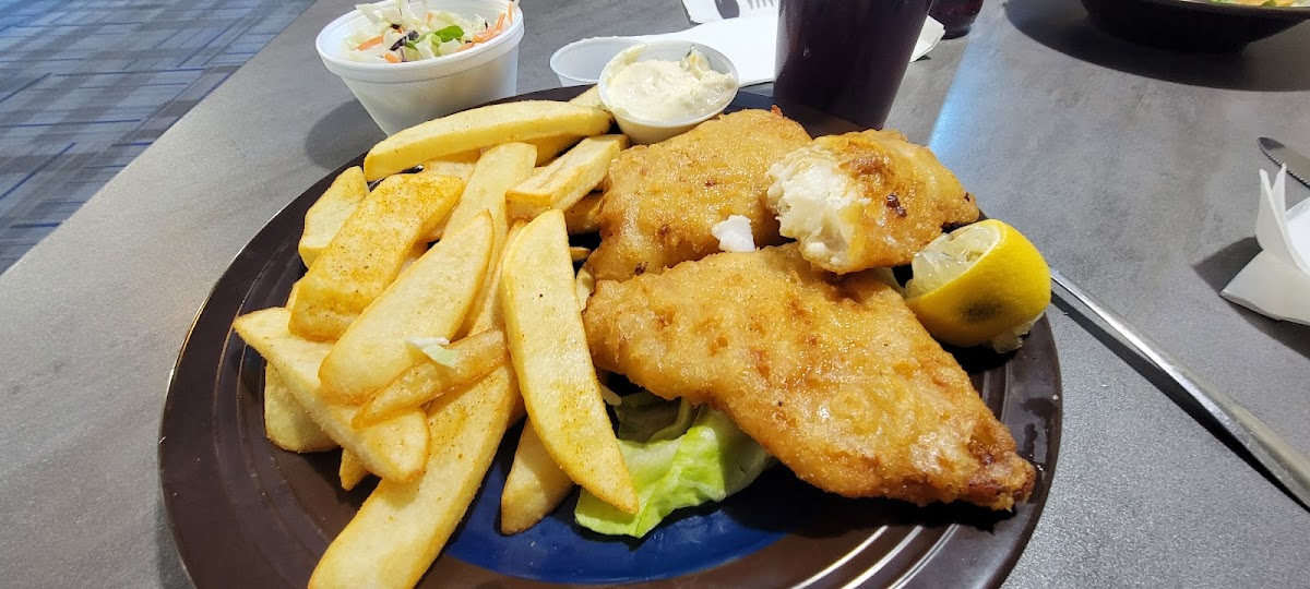 It's great to see a restaurant back in this building again! The staff are very friendly and we were seated immediately. We both ordered the salmon dinner which came with salmon, vegetables, your choice of potato and soup or salad. The food was pretty good. The salmon was slightly dry, but had great seasoning to it. The waitress gave me their brown sausage gravy with the garlic mashed potatoes. The carrots were nice and tender. It was a great experience and we're eagerly wanting to go back and try the fish and chips!