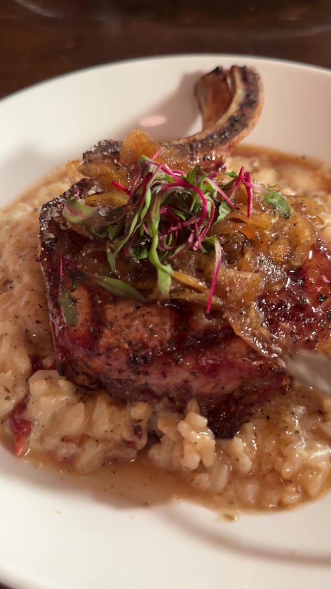Went here with my husband for a 5 o'clock valentines dinner reservation and our table was fully ready & waiting for us. My husband got some kind of pork chops dish and I got the shrimp (prawn?) Risotto + a cocktail off of their v day menu each! Everything was delicious and came promptly, but nothing felt rushed. Our waitress was so darling dressed for the lovey occasion and she was so warm, welcoming and helpful letting us know all the spots to hit in the neighborhood since it was our first time exploring downtown snohomish. Everyone was soooo kind. When we revisit we may try walking in for a more casual vibe (i really wanna try their apple goat cheese flatbread) but honestly booking a table is totally the way for us and we can't wait to take our family here. Thank you to everyone at the Repp for starting our night off so special!