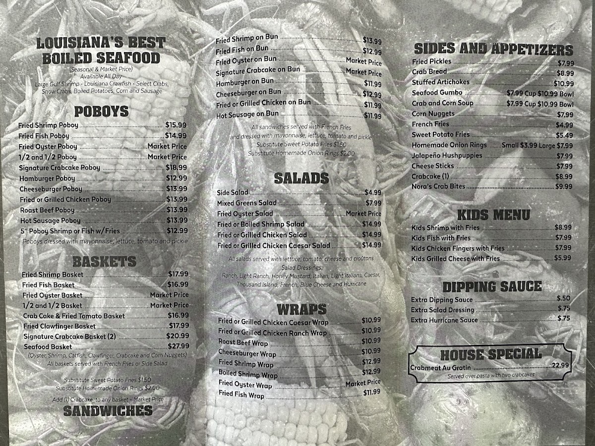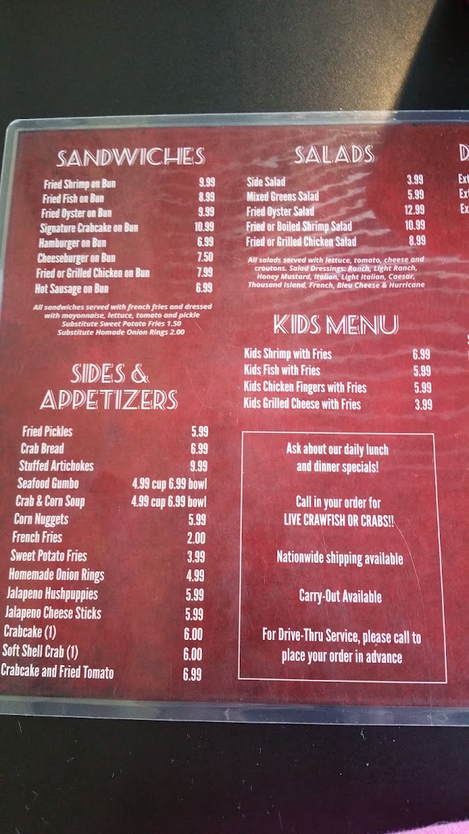 (Oyster, Shrimp, Catfish, Clawfinger, Crabcake and Corn Nuggets) All baskets served with French Fries or Side Salad