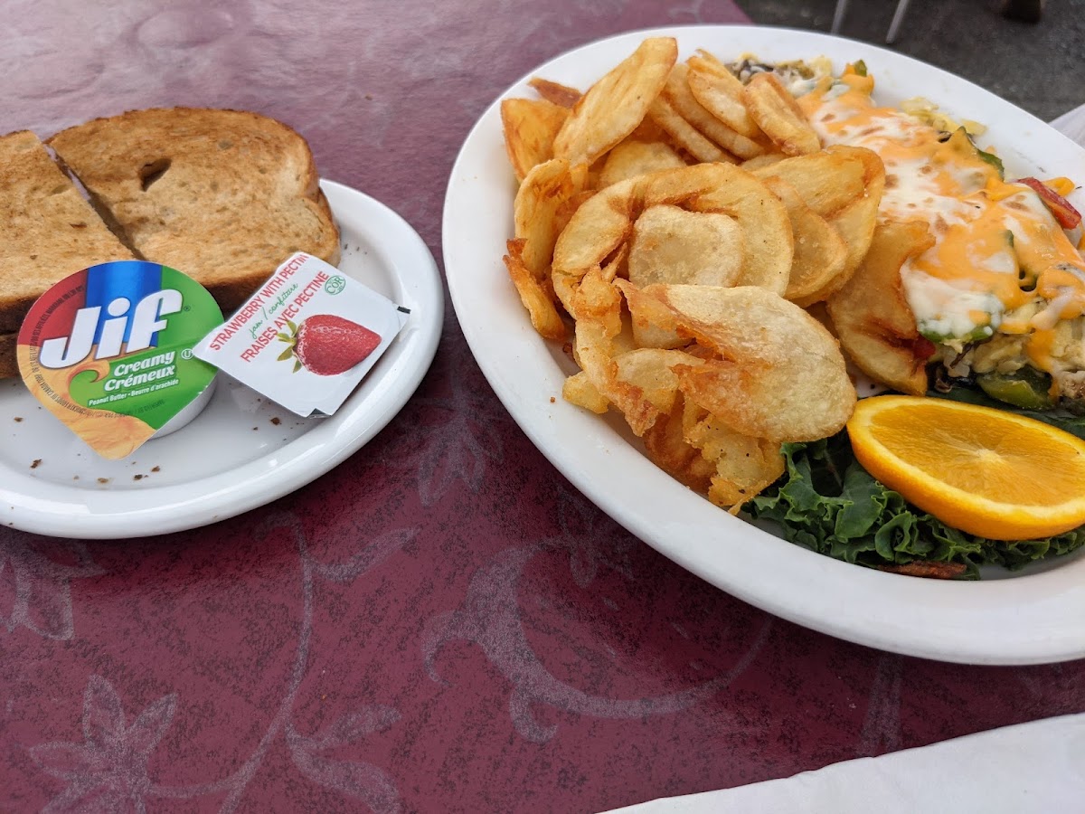 "Never judge a book by its cover". If you judge this restaurant by the motel attached to it, you would never give it a chance. But I was in a store just up the road and asked the cashier where I could get a big full breakfast. I was a little apprehensive when they suggested this place, but hey "YOLO" I had the Friar Tuck breakfast, and I am pretty sure I waddled out like a duck when I left, because I was so full. The place definitely has a beautiful personality. While I don't plan on making a motel reservation anytime in the foreseeable future .. I will definitely be back for a Friar Tuck.
