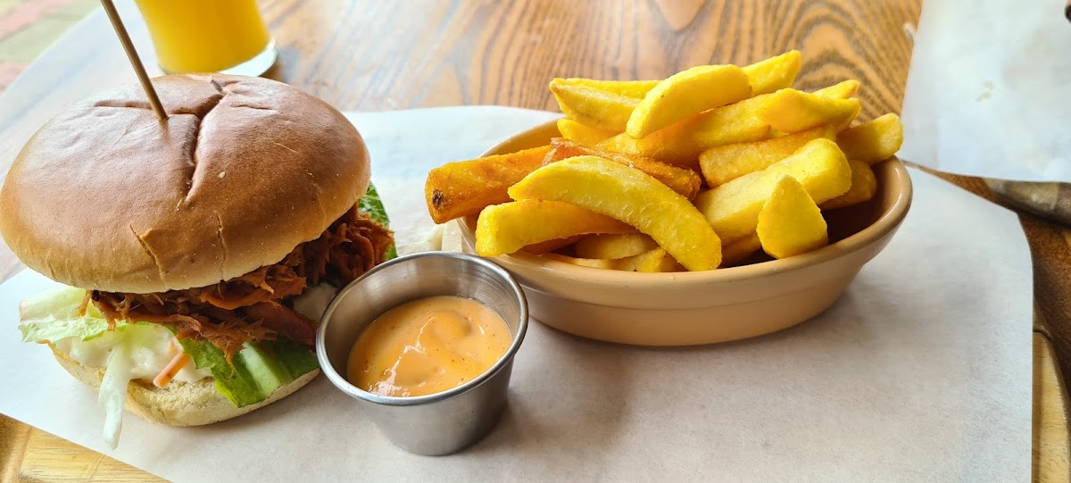 Love the food here, recommend the Korean chicken burger - the Garlic and Parmesan fries are delicious! A lovely place to eat and drink in the summer. Took a star off because it does need a bit of a spruce up as well as could update their ordering system for sitting outside, ordering at the bar when you sit outside is fairly outdated now