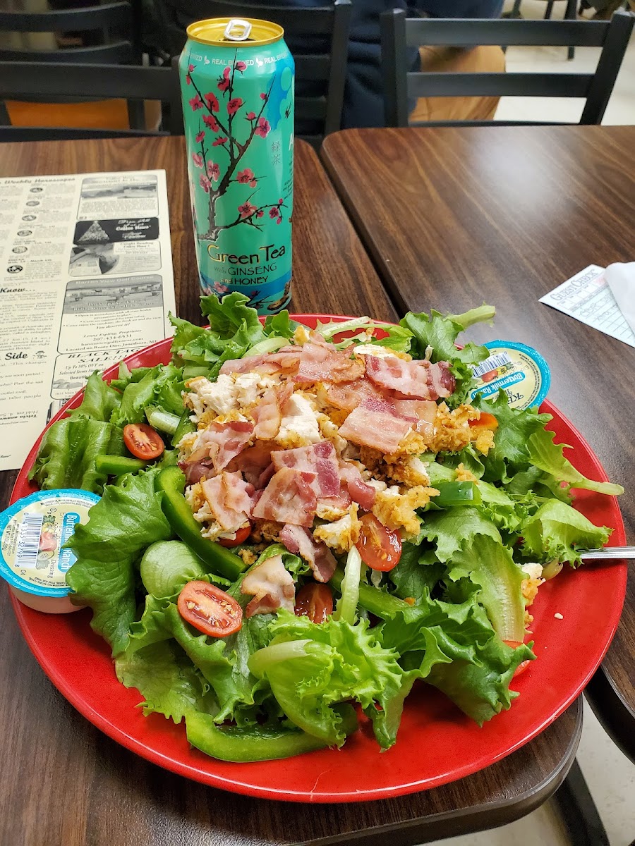 When we visited Machias, the only places open for breakfast were McDonald's, Dunkin Donuts, and Tom's. Don't be deceived by appearances. Go in the mini mart and there's a little restaurant at the back. Order at the counter and they'll bring your food to you. Get your beverages in the mini mart, then pay for everything at the mini mart checkout counter. I had sausage gravy & biscuits with an egg and hash brown patty. It was fine, but nothing special.