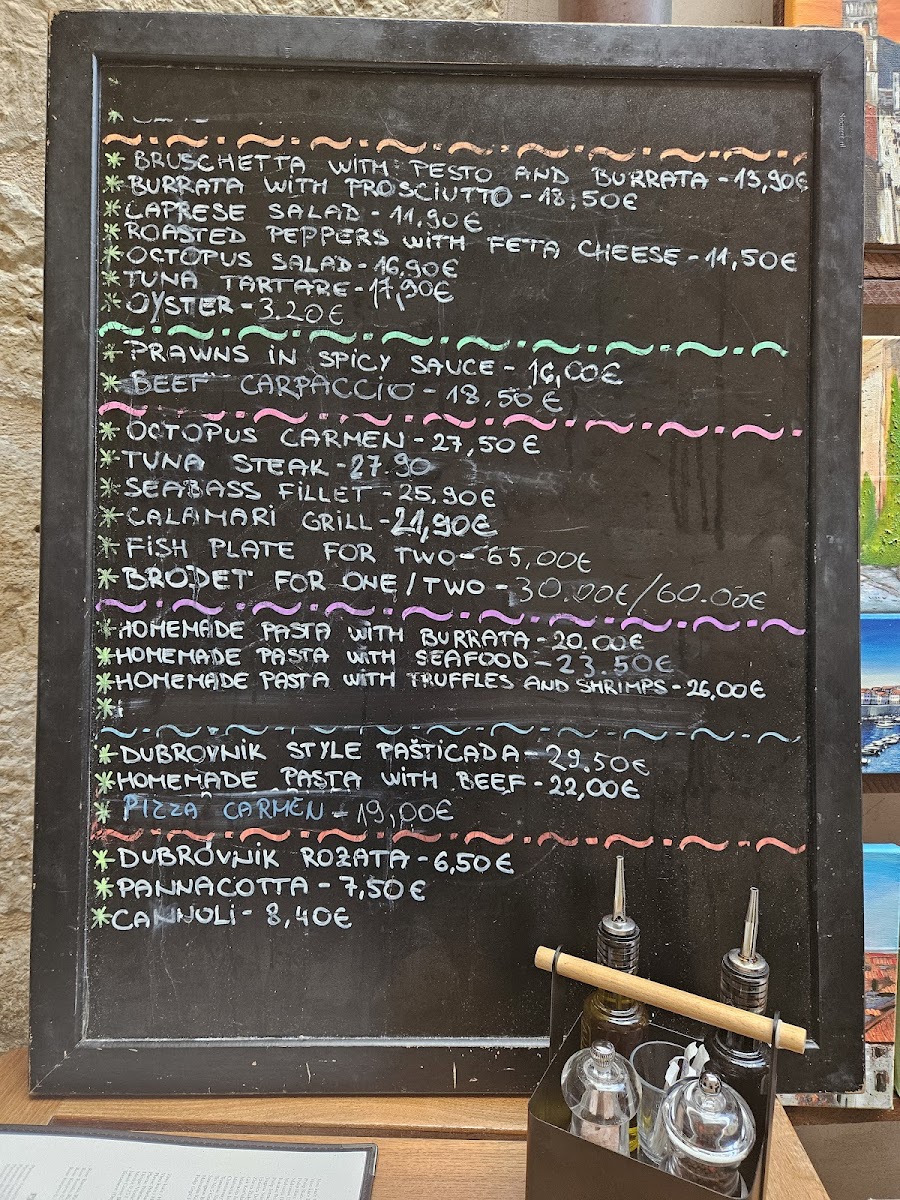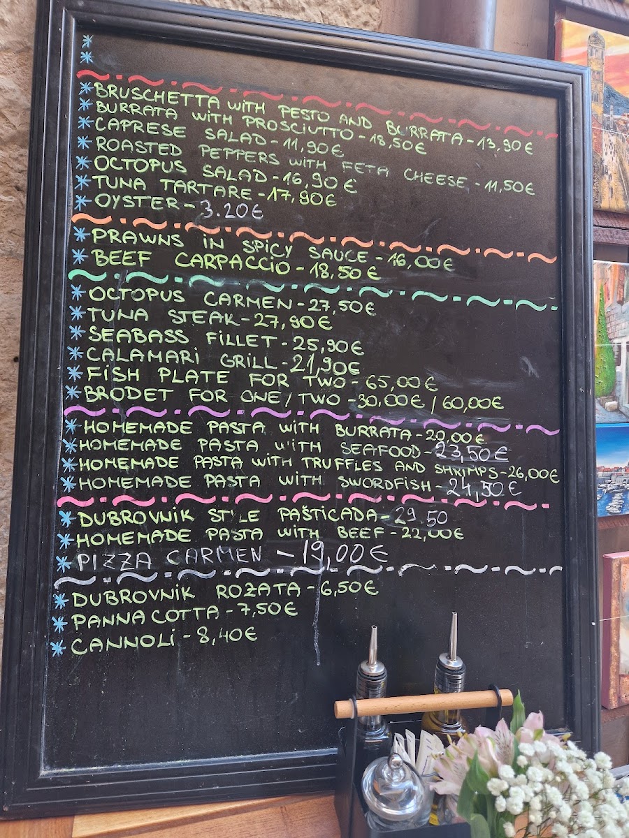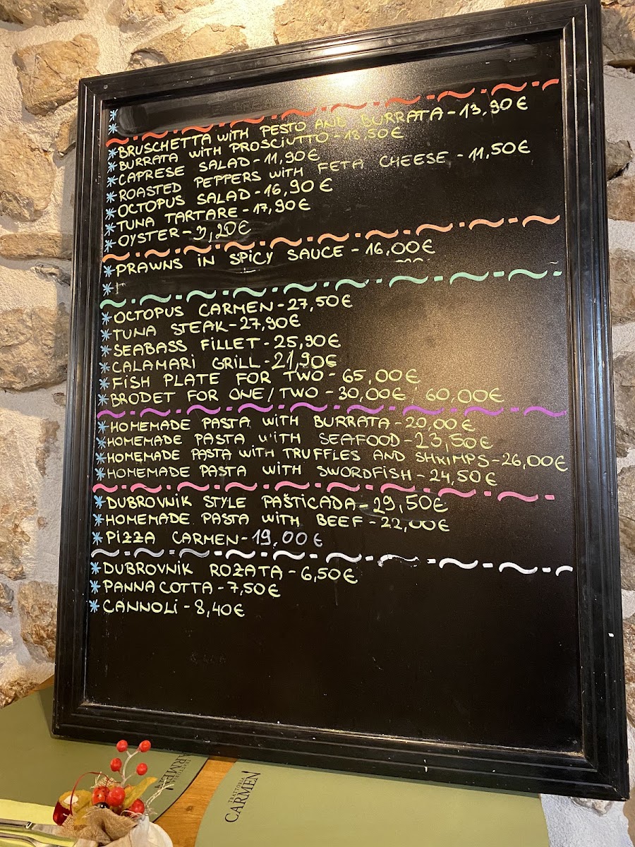 Carmen's menu changes daily depending on the offer on local fish and green markets. Below are the examples of our delicious specialities.