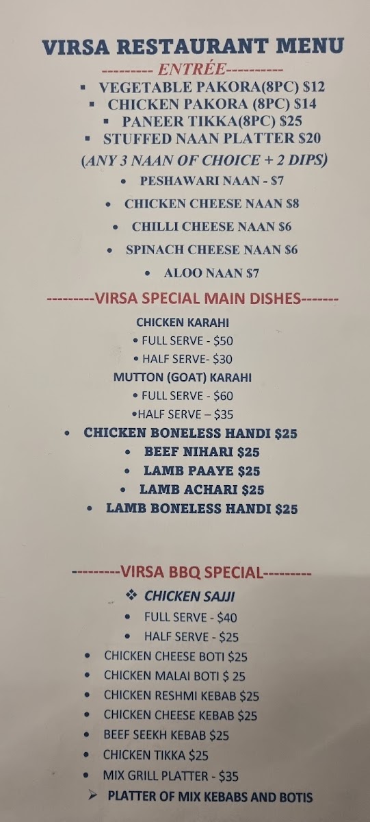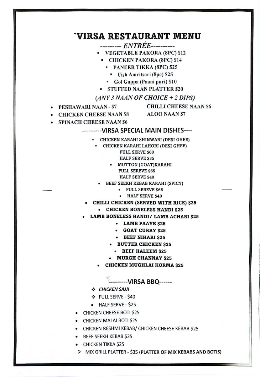Includes pakora entree, one vegetarian curry and two non vegetarian curry, one biryani, four pieces of naan and served with two steamed rice, one barbecue and 1.25l drink.