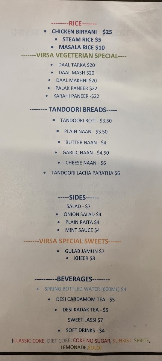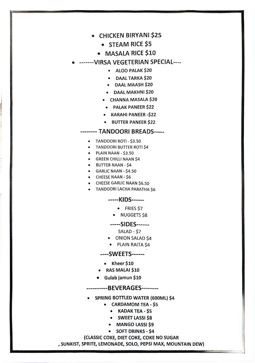 Biryani with raita, soft drink and dessert.