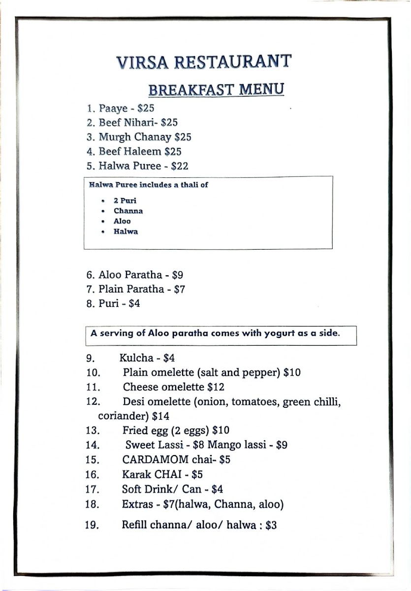(Halwa, channa, aloo).