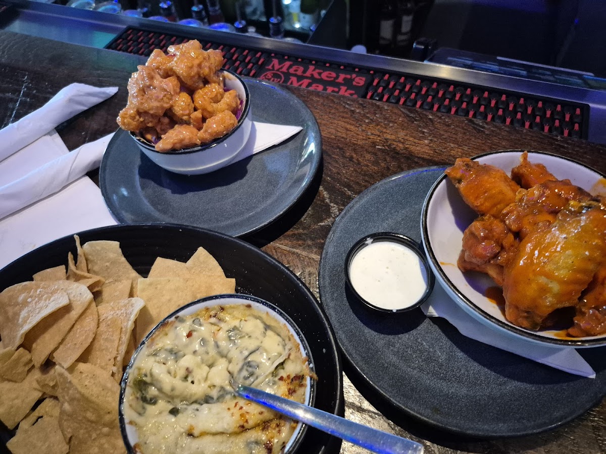 The food is great. The staff is nice and friendly. The facility is super clean. The restraunt was filled with TV screens, LSU, sports memorabilia, and music. It has high vibrations but you can still hear yourself talk, it's not over whelming like a club so you can bring the family here and everyone will have a good time. There is so much space with plenty of seating options. My husband and I went during happy hour. We ordered one spirited drink, two cups of ice water, Boom Boom shrimp, buffalo wings, and spinach dip to taste test because it was recommended by the waitress. There is a full bar. We sat at the bar, and there were a lot of couples at the bar. The single guy was mingling with a young lady in no time. This must be the hookup spot. The bartender staff is really friendly and talkative, so if you come alone, sit at the bar and you will not feel alone. Even if you dont drink, they have several beverage options, including cold ice water, which is free. Everything was really good. The menu holds a ton of options for the heartiest appetites. For a great time, great energy, great food, friendly staff, and a clean environment this is the place to relax and disconnect from the world, meet new people, and disconnect from the rest of the world just for a moment. Please like and follow me for more authentic reviews, please, and thank you!