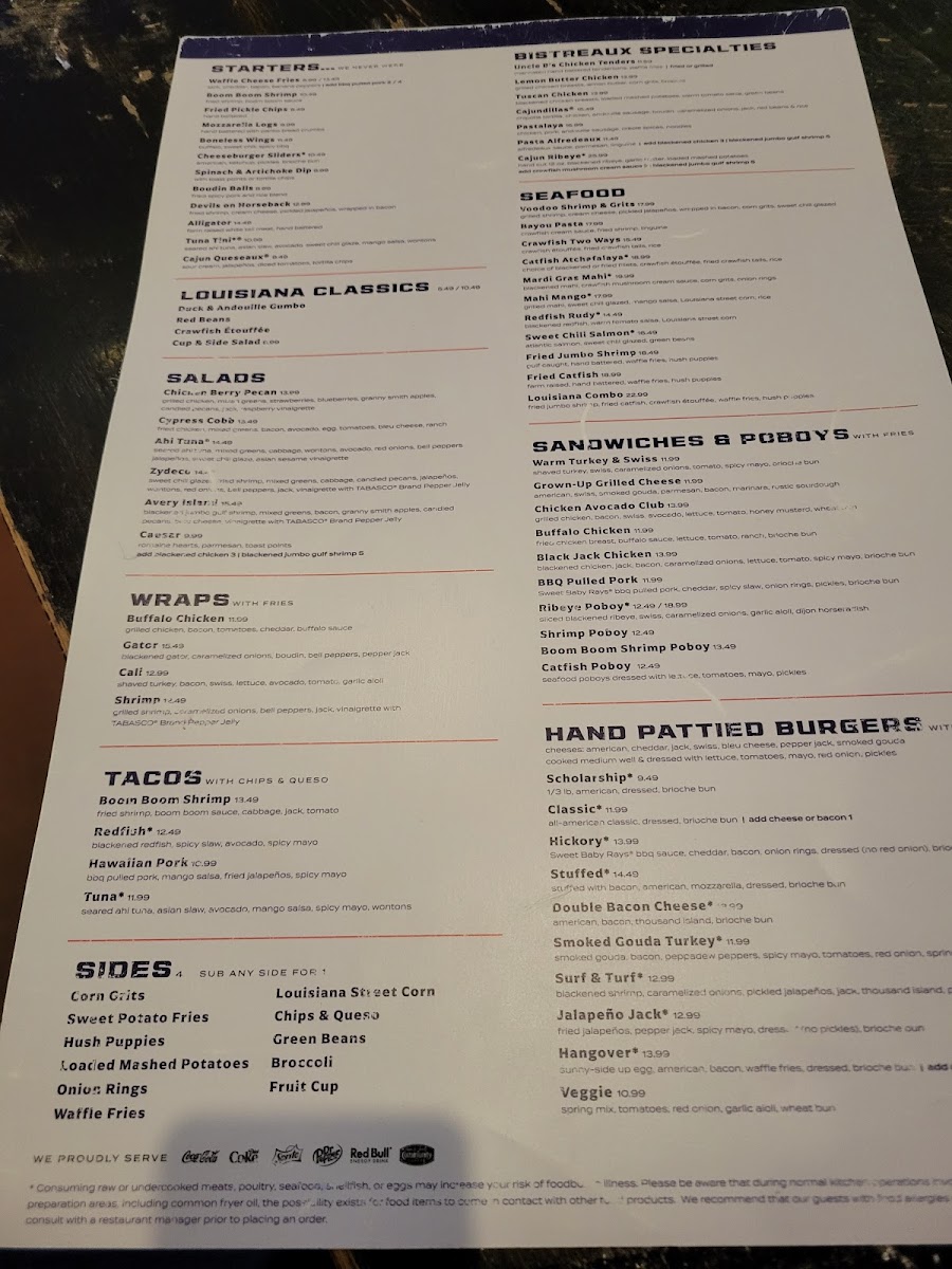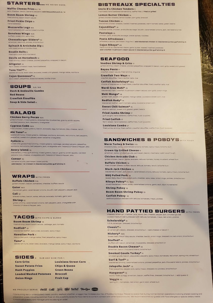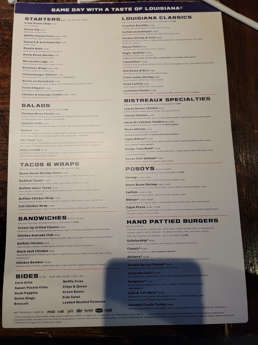 Whole or Half CHOICE OF: boom boom shrimp fried shrimp • fried catfish tomato, lettuce, pickles, mayo, poboy bread Some items served at this establishment may contain imported crawfish or shrimp.