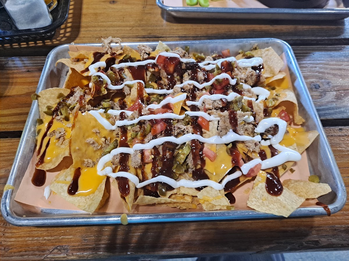 We had the wings and were surprised at how sweet they were. The loaded pulled pork nachos were excellent. The ribs were falling off the bone tender and had good flavor but unfortunately the BBQ sauce tasted like sweet baby rays and the hot sauce seemed to be Louisiana style hot sauce. We do wish others would have been with us so we could have tried more dishes. If in the area we will swing by again.