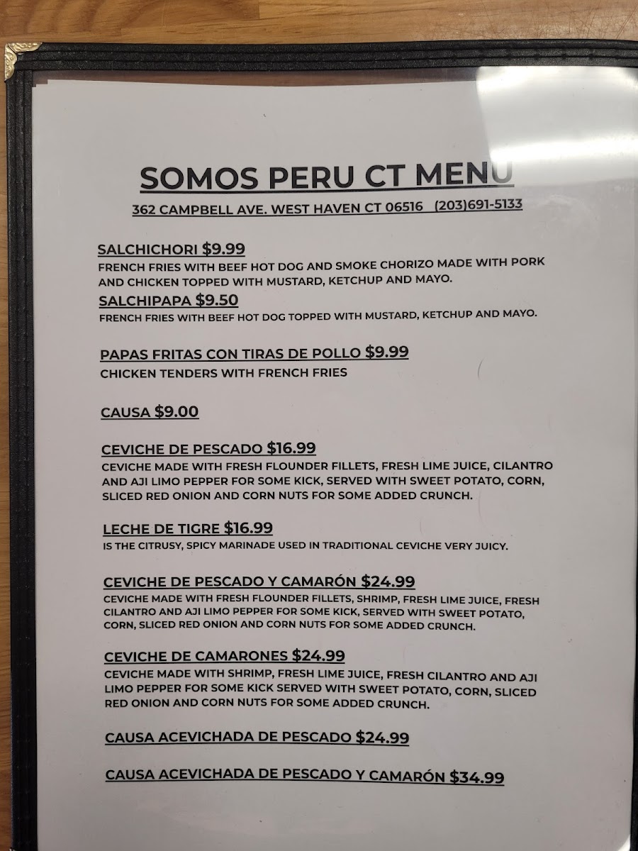 Ceviche made with fresh flounder fillets and shrimp, lime juice, cilantro, red onion, and aji limo pepper for some kick.