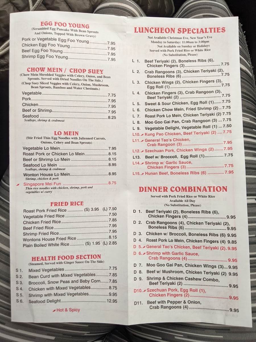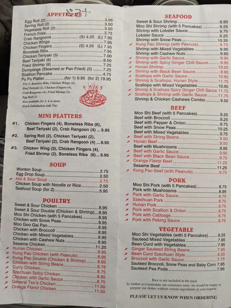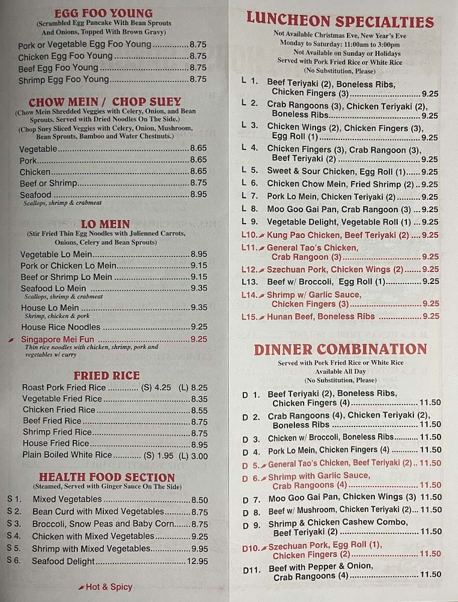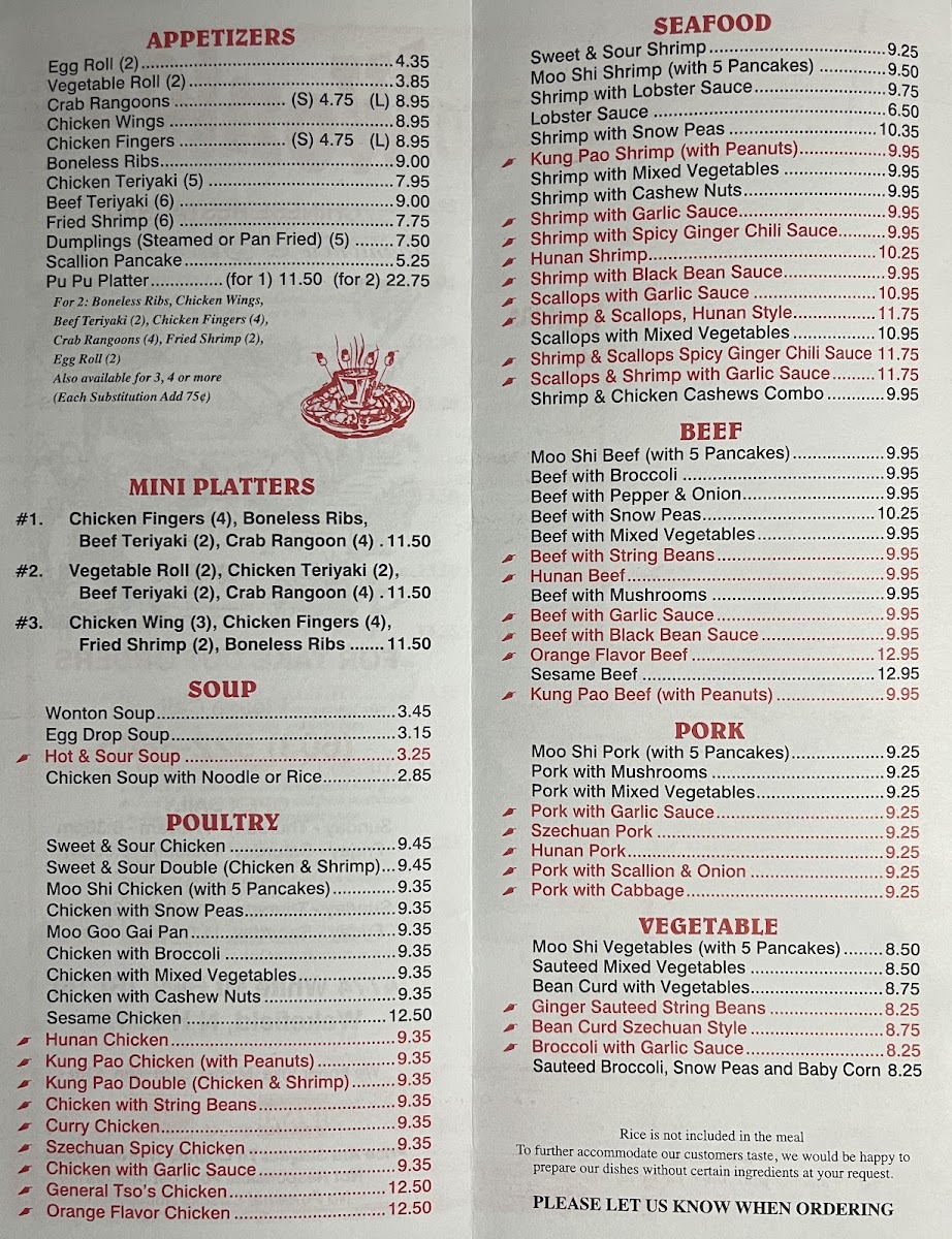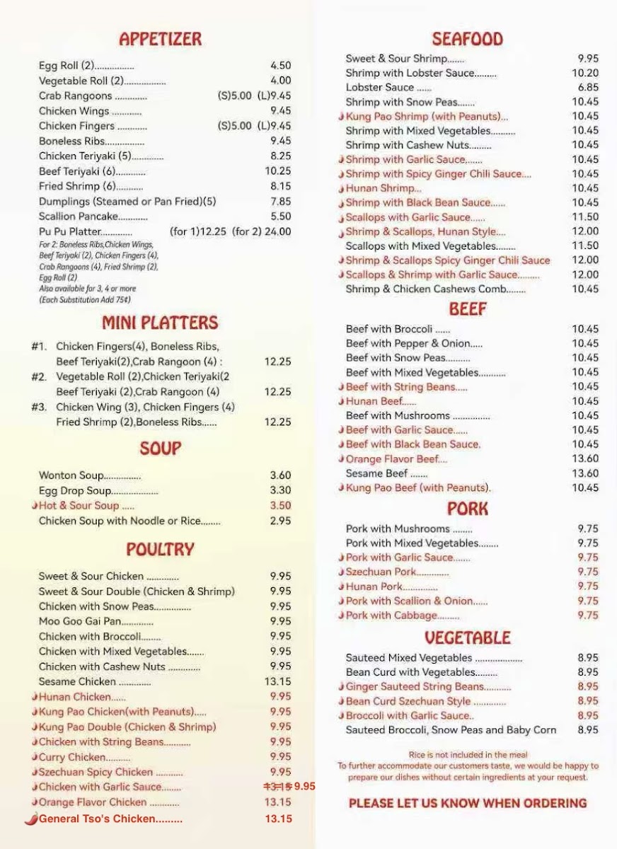 Szechuan Pork, Egg Roll (1), Chicken Fingers