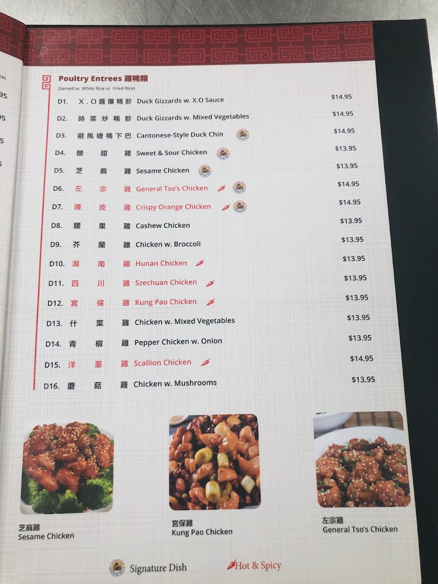 Chef choice. Chicken or duck. Stir fried with your choice of chicken or duck, with water chestnuts, onions & scallion, served with cool fresh lettuce topped with cashew nuts.