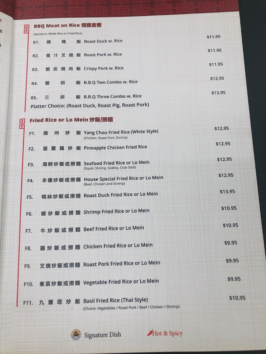 Combo choice: roast duck, roast pork or crispy pork.