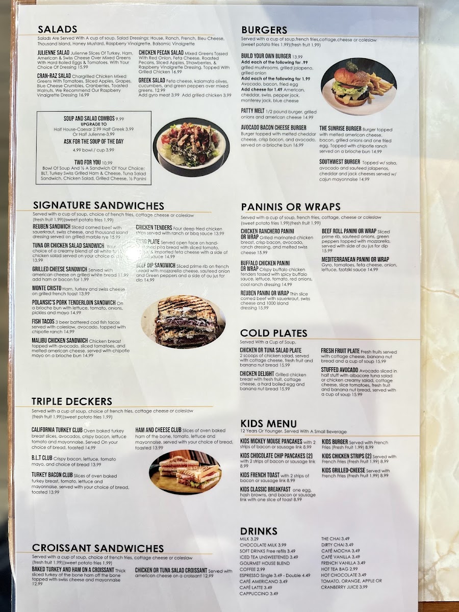 Ham, Onion, Peppers, Cheddar, And Salsa Served With Hash Browns or Diced Potatoes And Choice Of Two Pancakes, Toast or French Toast