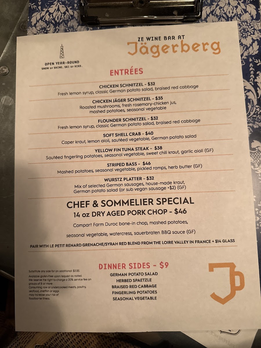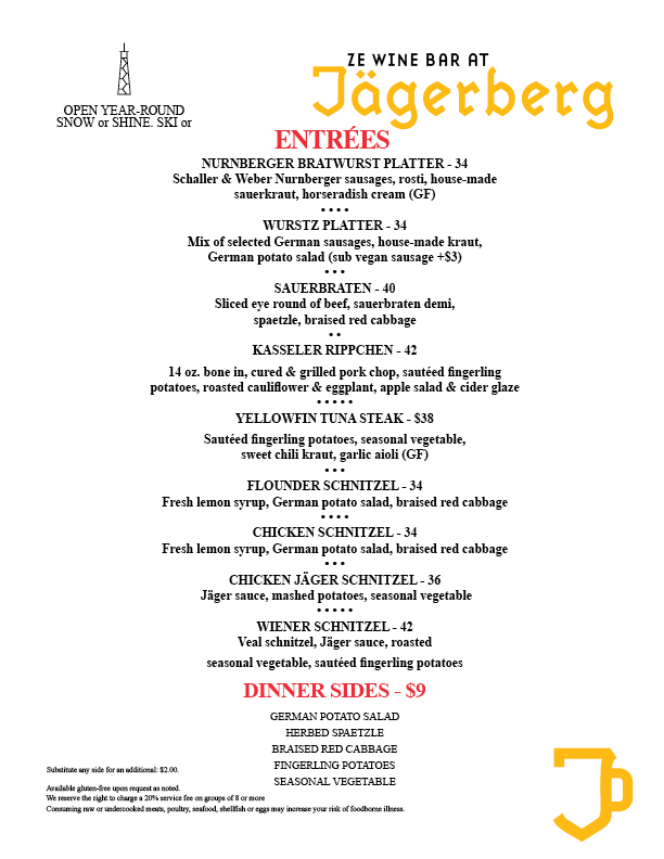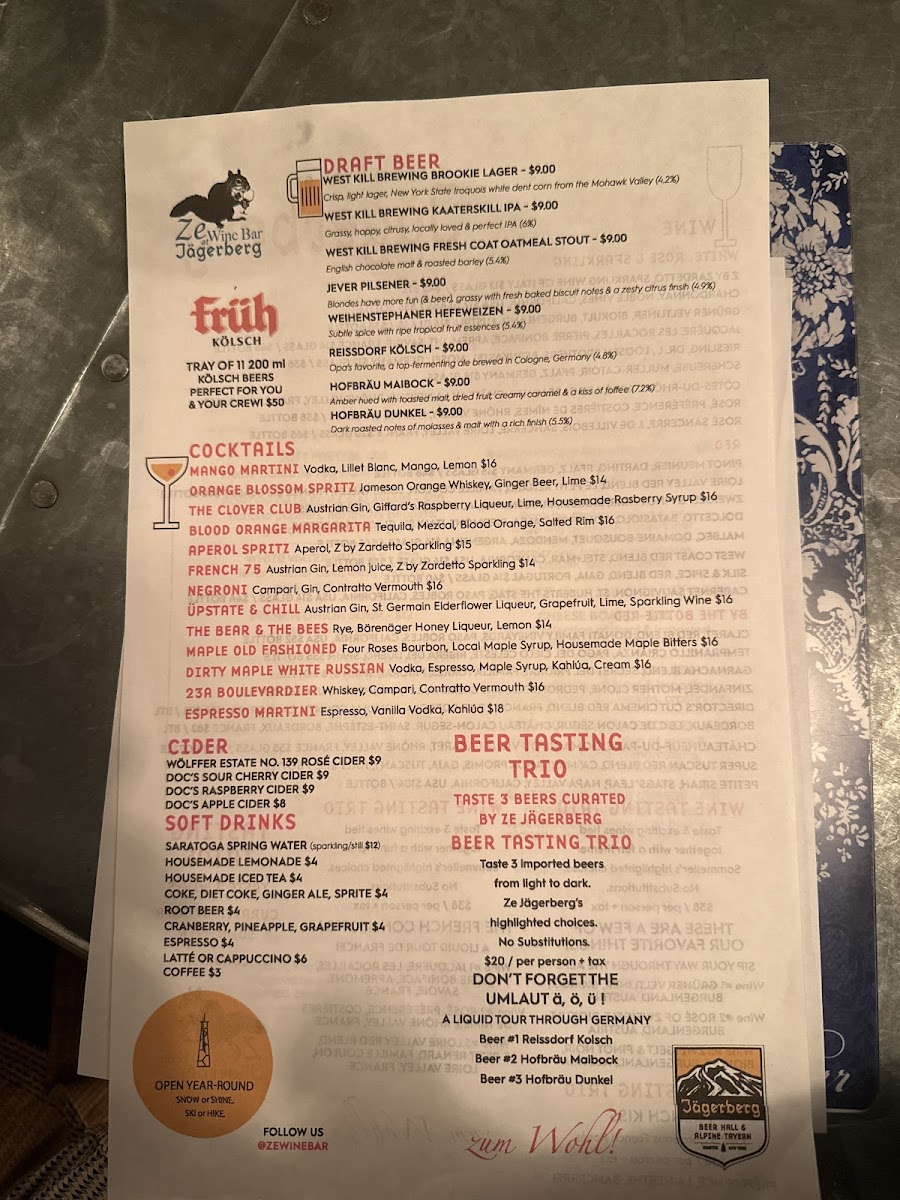 Ze Wine Bar At Jägerberg Beer Hall And Alpine Tavern Menu