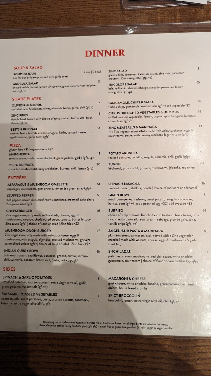 mixed greens, feta, tomatoes, pine nuts, kalamata olives, croutons, zinc vinaigrette