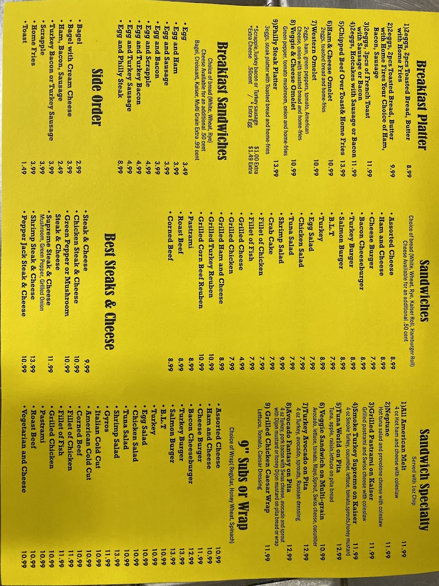 3 eggs, steak platter with toasted bread and home fries. Serving until 11 a.m.