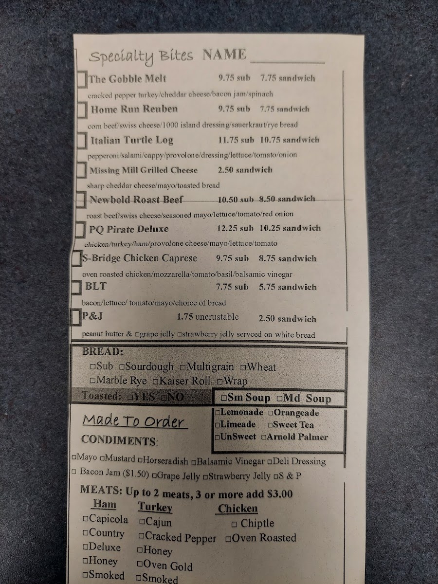 Planters Ridge: The Market Menu