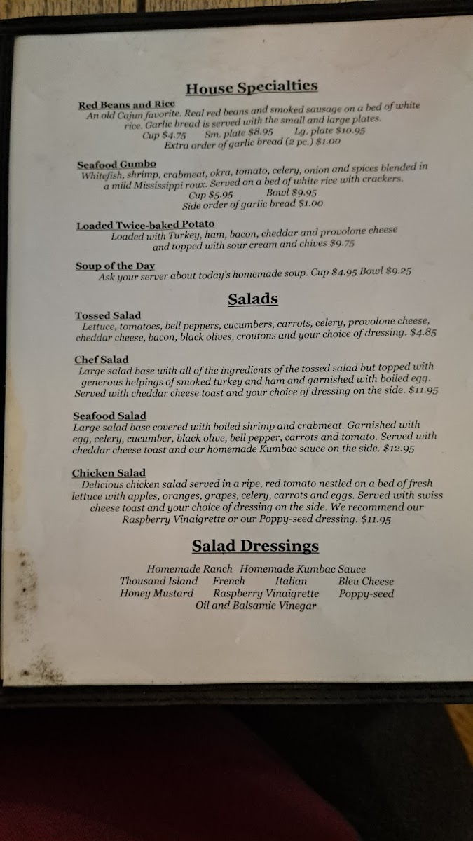 Small salad base covered with boiled shrimp and crabmeat. Garnished with egg, celery and carrots. Served with Cheddar cheese toast and our homemade Kumbac sauce on the side.