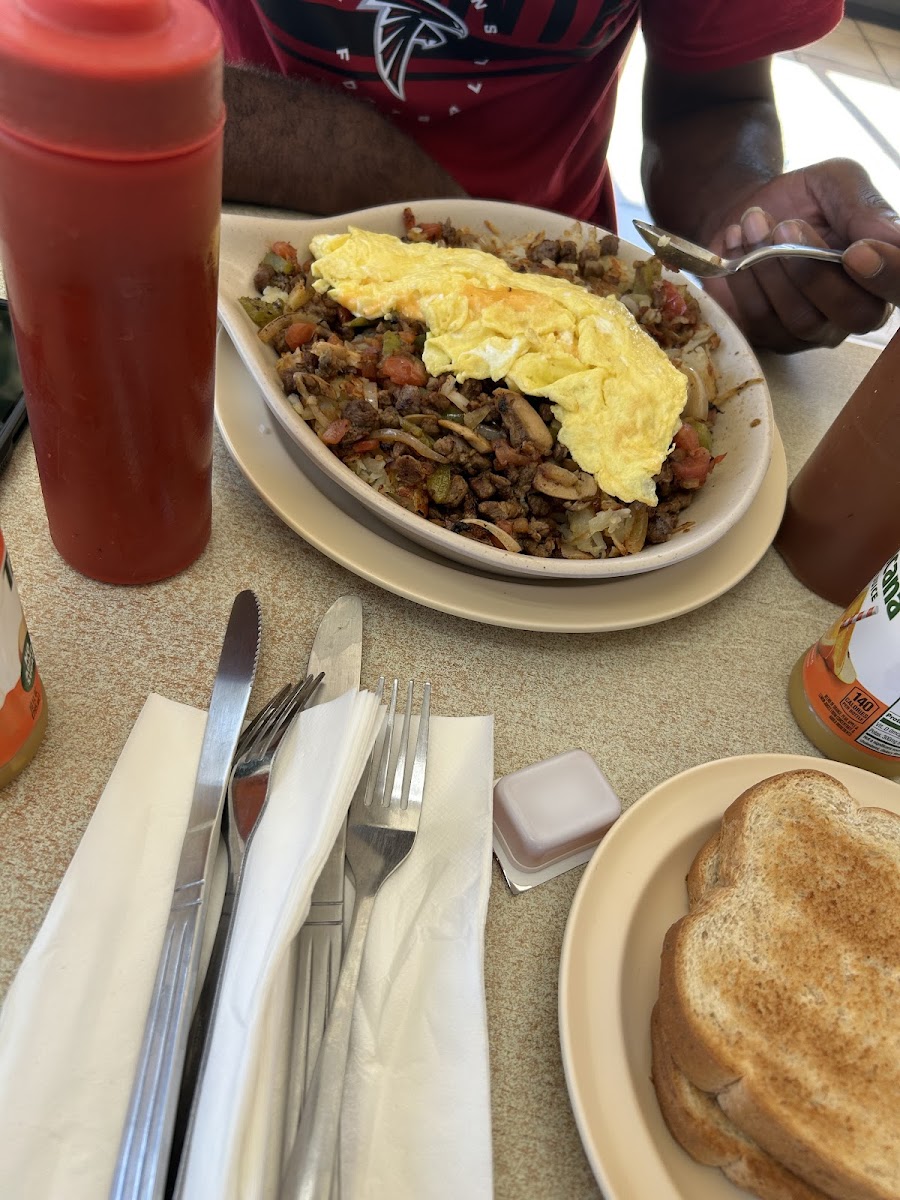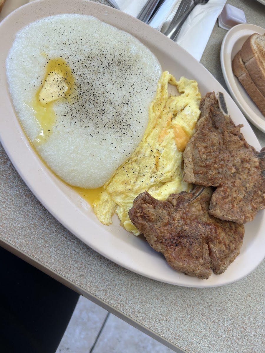 The guy taking orders was very nice and accommodating you place your order at the window my food was so delicious pork chops was crispy grits was just right and the steak skillet was really good