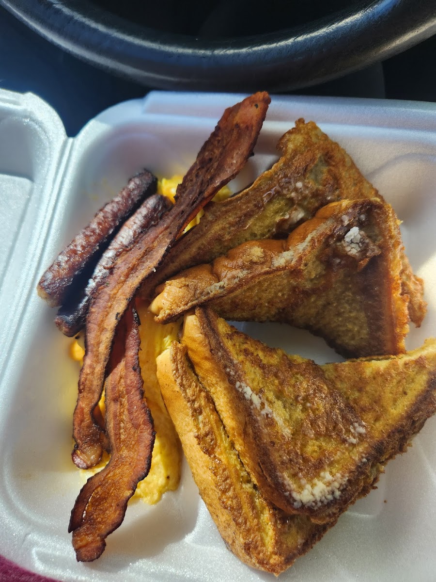Stopped in for breakfast to go on a Sunday after walking in Rainbow Beach Park. Got the breakfast special with French toast. Under $10. Fast service. Worth popping in