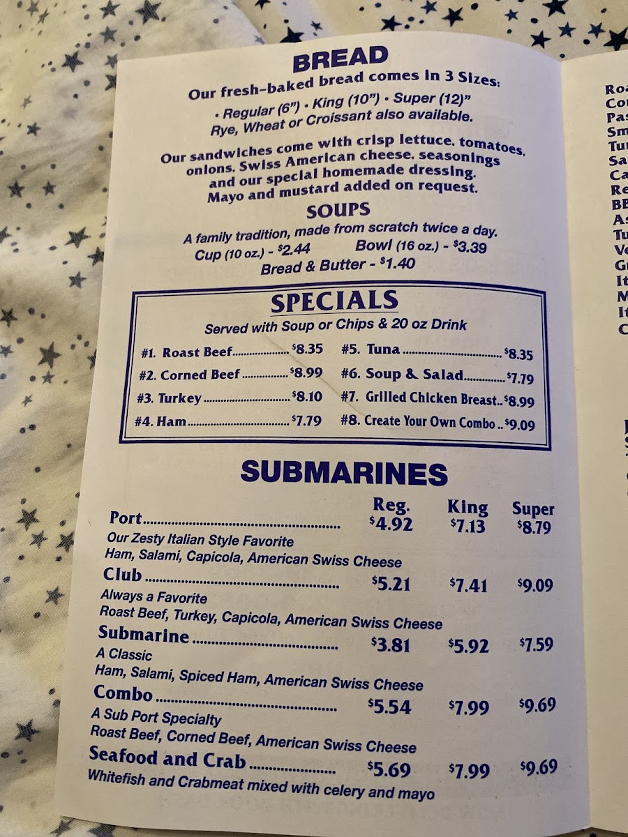 Sub Port Favorite with Hand Sliced Roast beef, Brown Skin Lean Turkey, Old World Capicola, and Swiss Cheese. Topped with Lettuce, Tomatoes, Onions, and our Homemade Dressing.