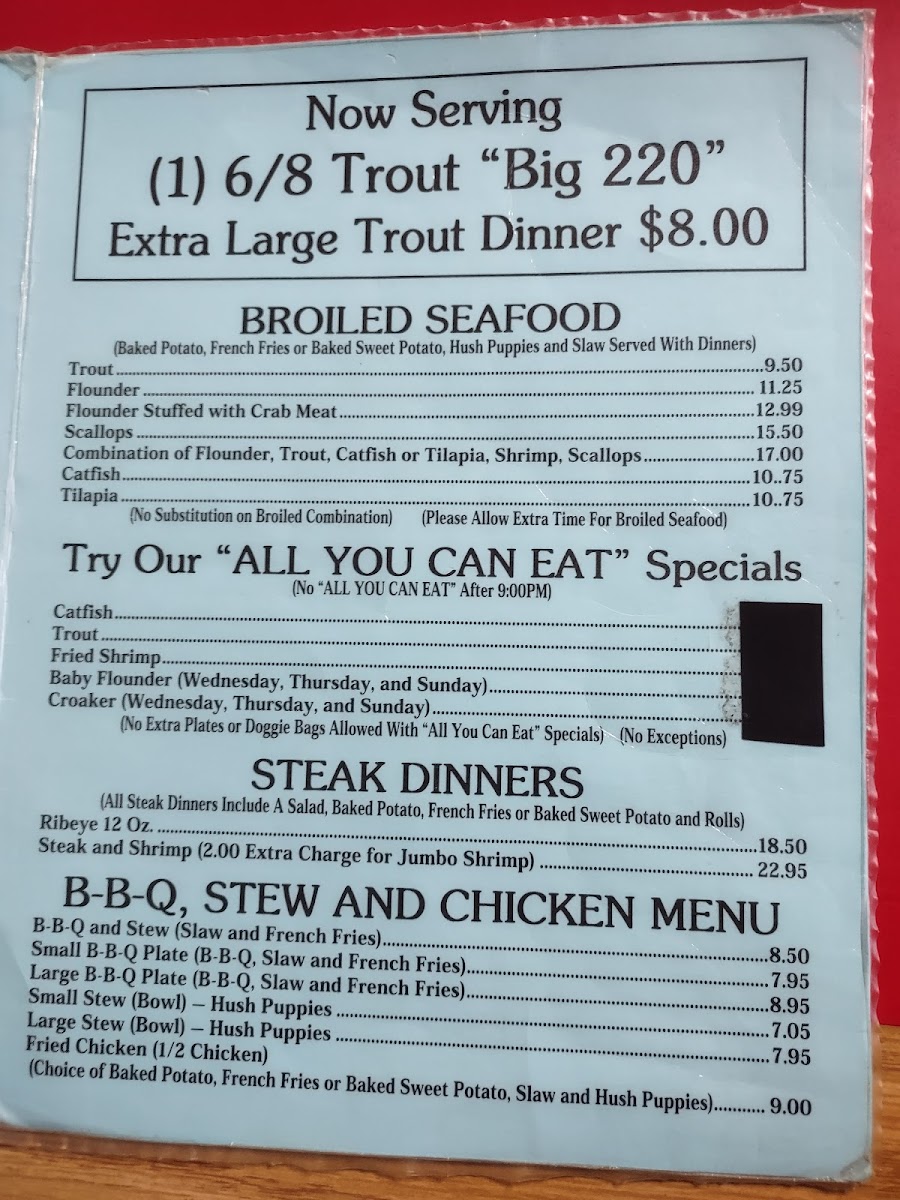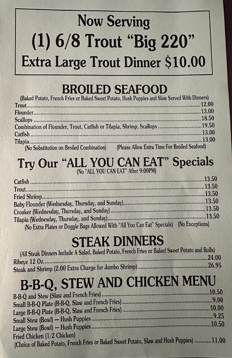 B-B-Q, Stew And Chicken Menu