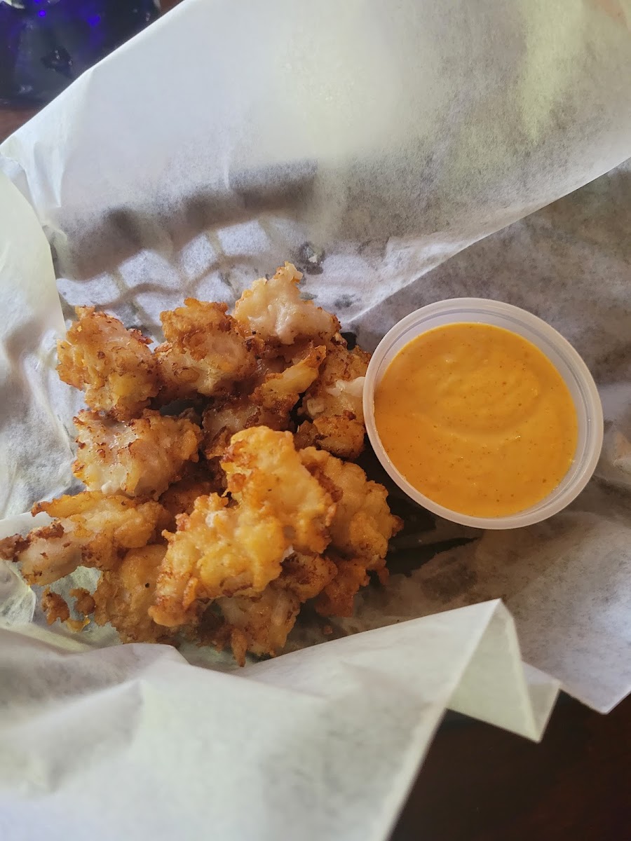 We happened upon this place. Absolutely loved it. Sat outside on the deck with our dog had the bacon wrapped shrimp as an appetizer and the coconut shrimp. We split both and it was plenty for the 2 of us. It was one of the best coconut shrimps I've ever had and I've had a lot and the best classic rock was playing the whole time we were there.