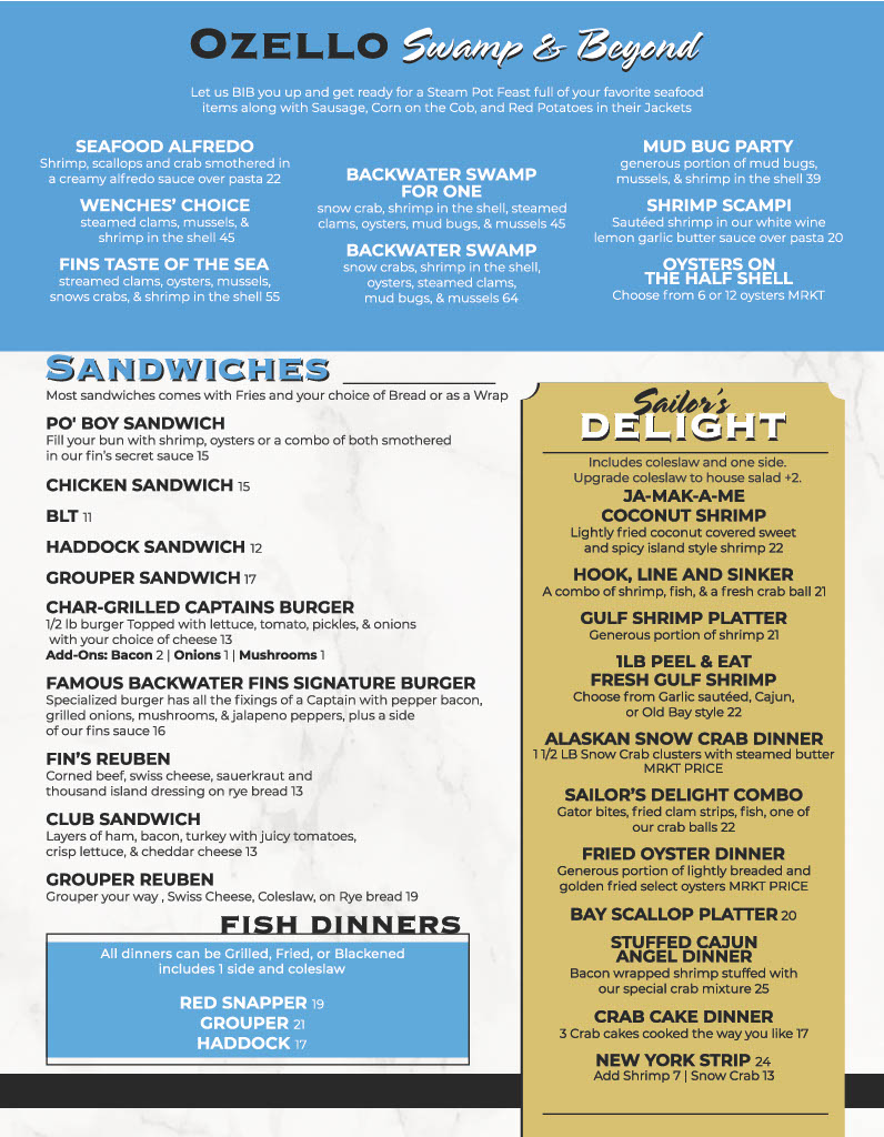 Famous Backwater Fins Signature Burger