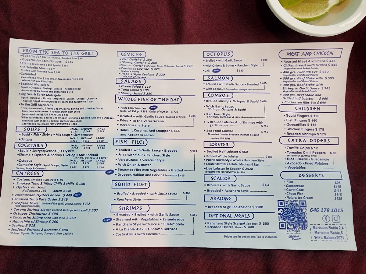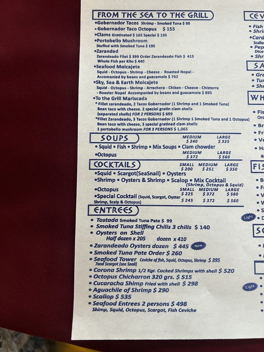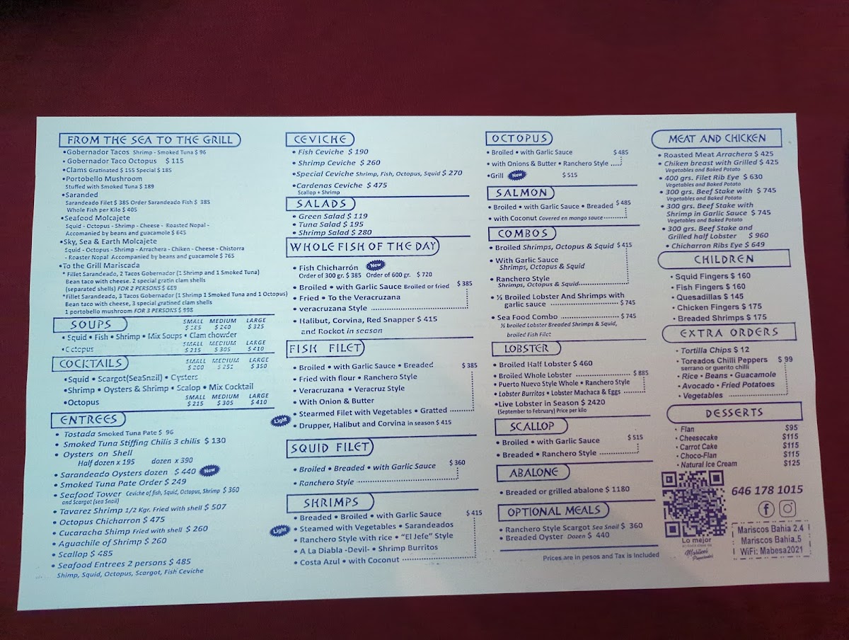 Bahia Seafood Of Ensenada Menu