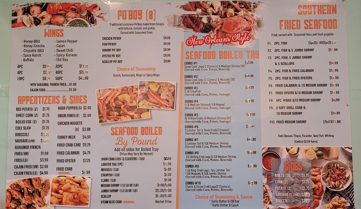1LB King Crab Legs,1pc Lobster Tail,1LB Green Mussels & 1 lb Jumbo Shirmp (Served with corn, potato,broccoli & Sausage.