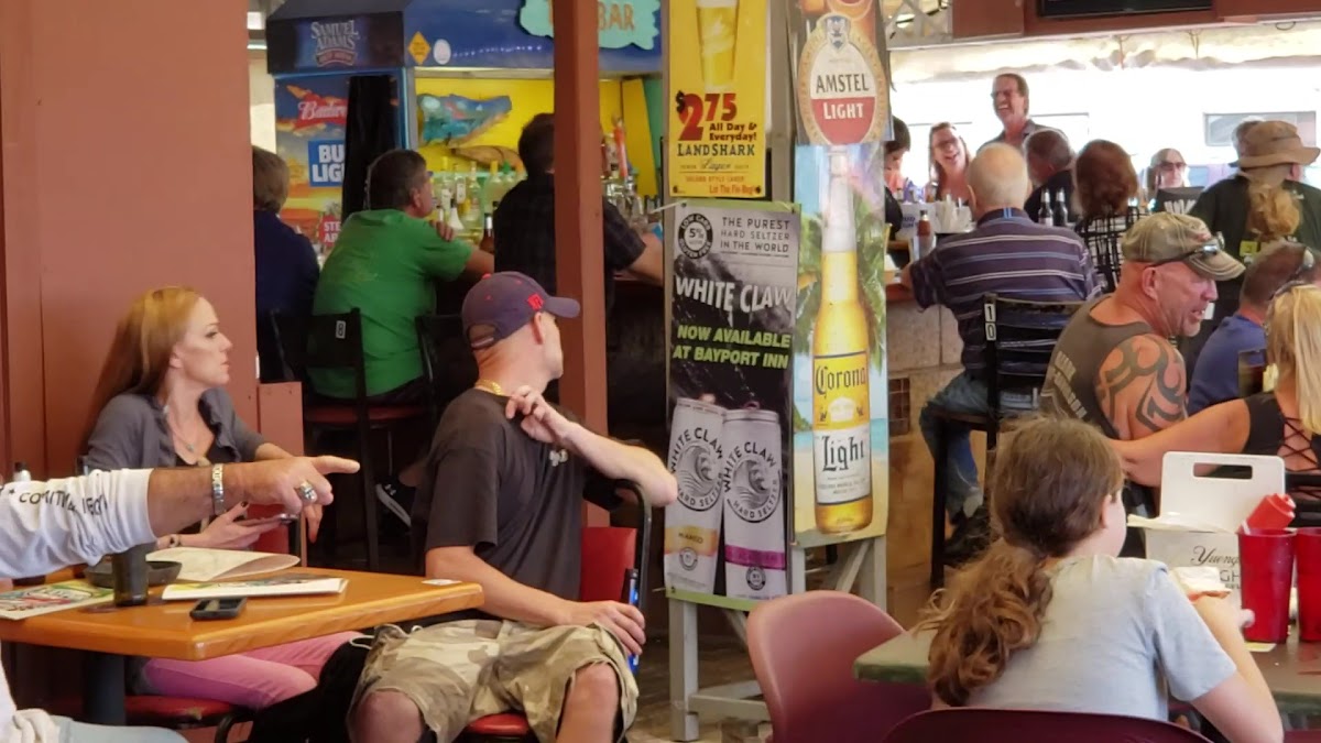 Bayport Inn, located at 4835 Cortez Blvd, Spring Hill, FL 34607, United States, is a seafood restaurant known through 4533 user reviews. It experiences significant peak wait times, especially on weekends and some weekdays, with waits up to 45 minutes in late afternoons and early evenings. Featured menu items include All You Can Eat Shrimp, French Fries, All You Can Eat Fish Fry, Fried Shrimp Basket with Fries, and Raw Oysters served with Stella.