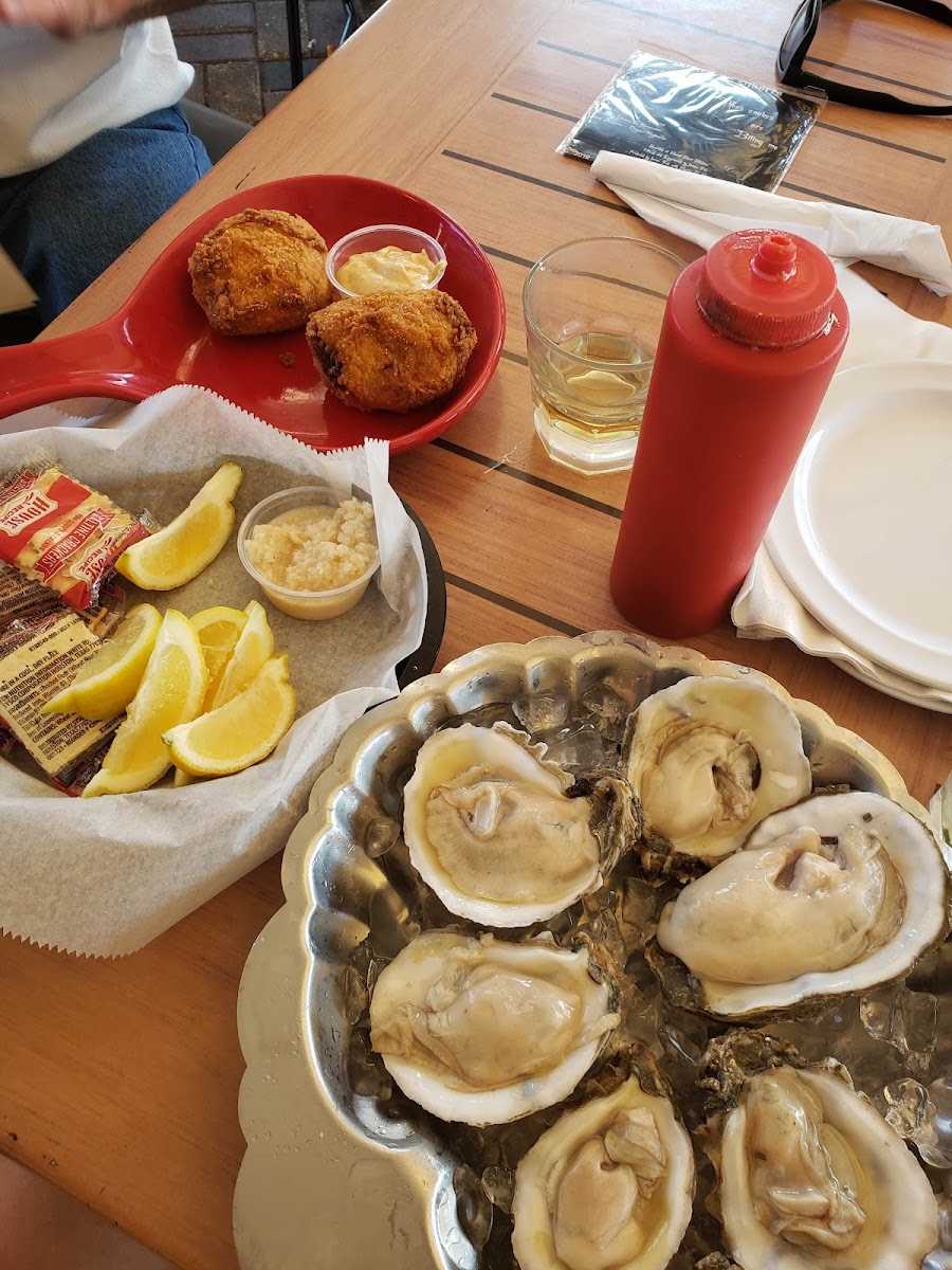 The atmosphere was cute. The waiter we had on 2/25, outside on deck, was wonderful! I haven't seen a server that kind and considerate in yrs! Hubby had all you can eat fish and shrimp while I had the mermaid platter. It was delicious. Gator appetizer was good and the margaritas? Yum! I highly recommend stopping by! Oh, and check out Charlie Bird .