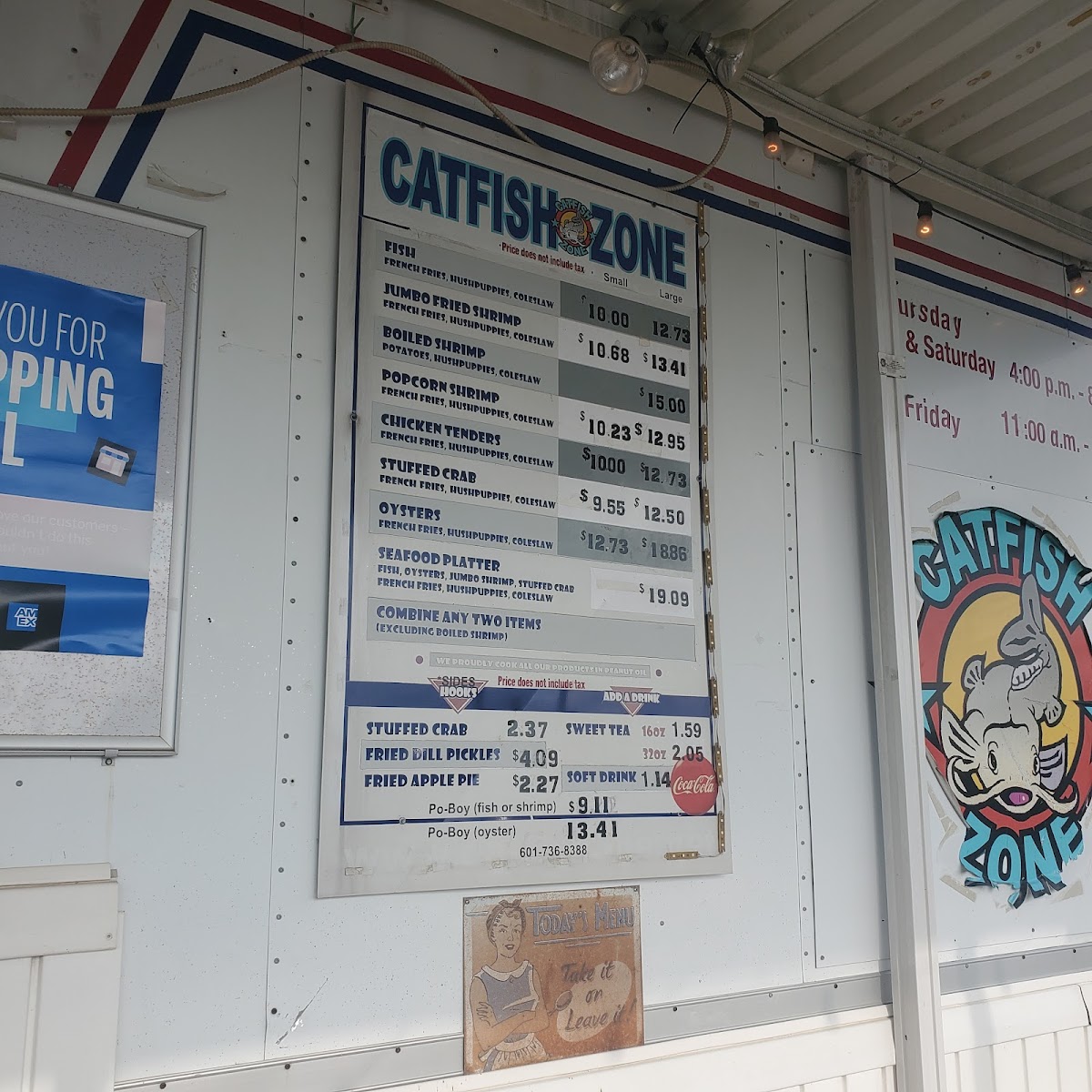Catfish Zone is situated at 1221 US-98, Columbia, MS 39429, United States. This seafood restaurant has 153 reviews and features a menu centered around fried seafood and sides. Its highlighted dishes include Fried Shrimp, Tater Tots, and Fried Clams, focusing on classic southern-style seafood fare.