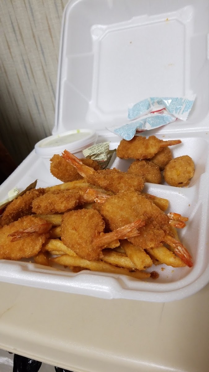 Awesome Experience This little take out place was perfect for our family as we were traveling. The workers are friendly and the food was awesome. We had a catfish plate - the breading is light and the fish was fluffy (not fishy at all). We had popcorn shrimp - they were so good, not what I expected. These are real shrimp lightly battered and fried. So good. Hush puppies are good, fries taste homemade and potato salad is a sour cream base with a slight smoky taste. Called ahead, was ready in 5 min.